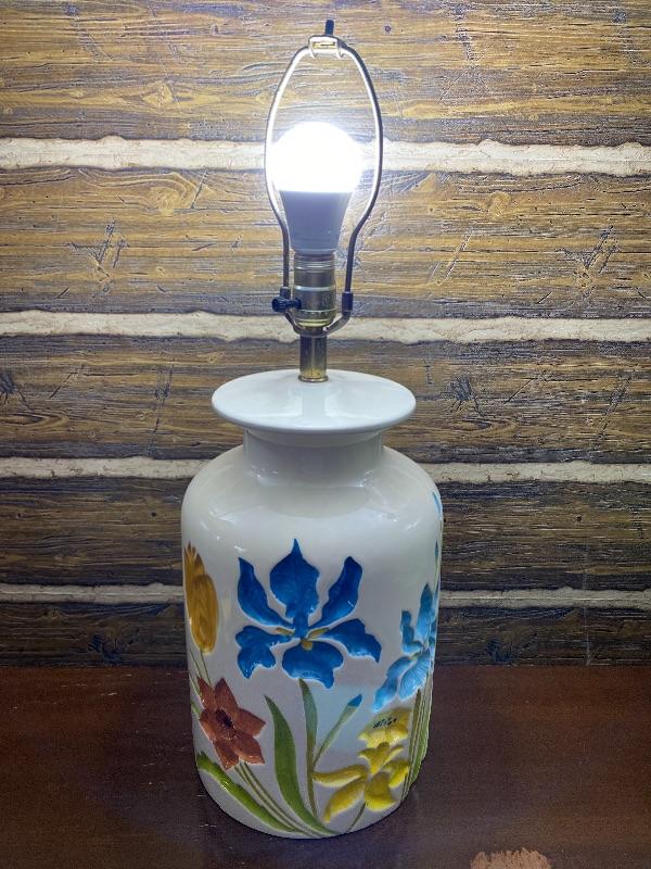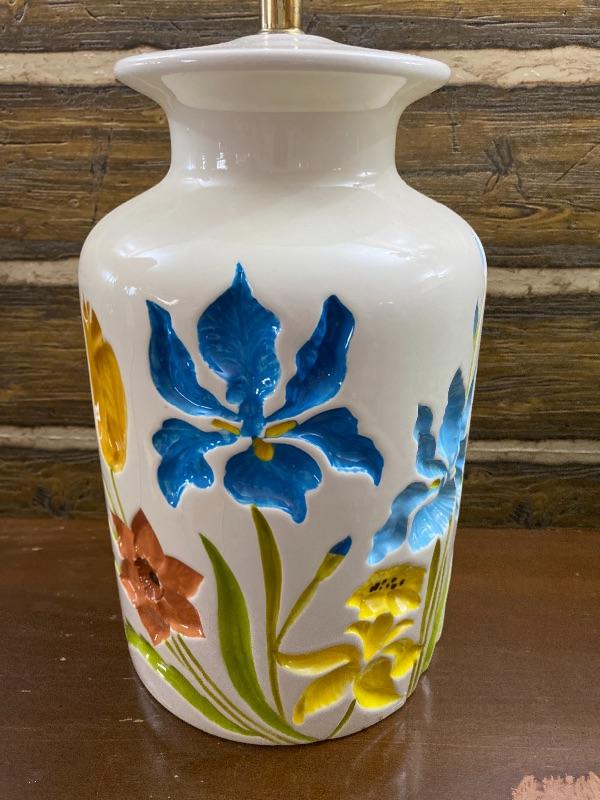 Lot # 219 -Vibrant Colored Embossed Flower Ceramic Lamp