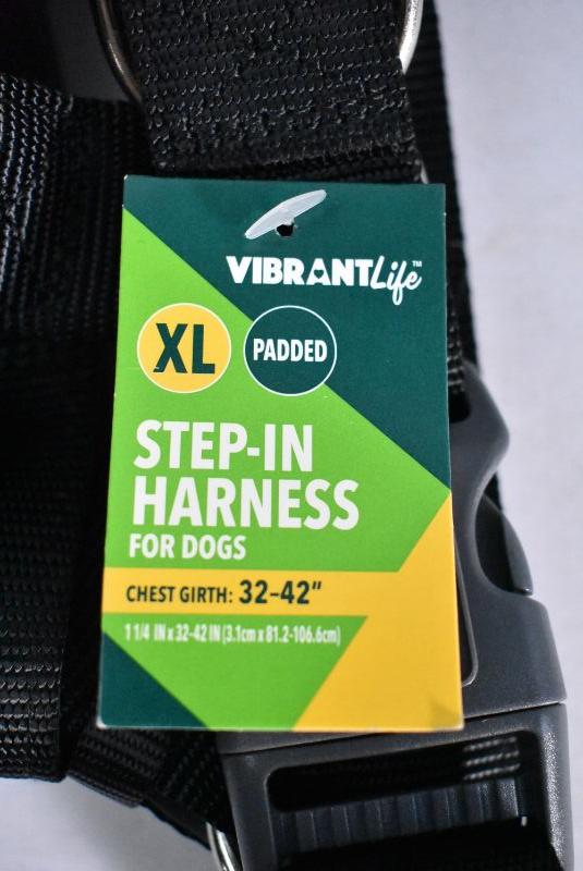 Vibrant Life Padded Step-in Harness for Dogs 32-42" Chest Girth. Black - New