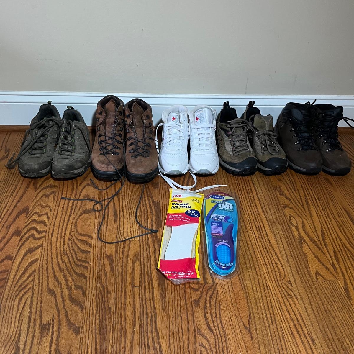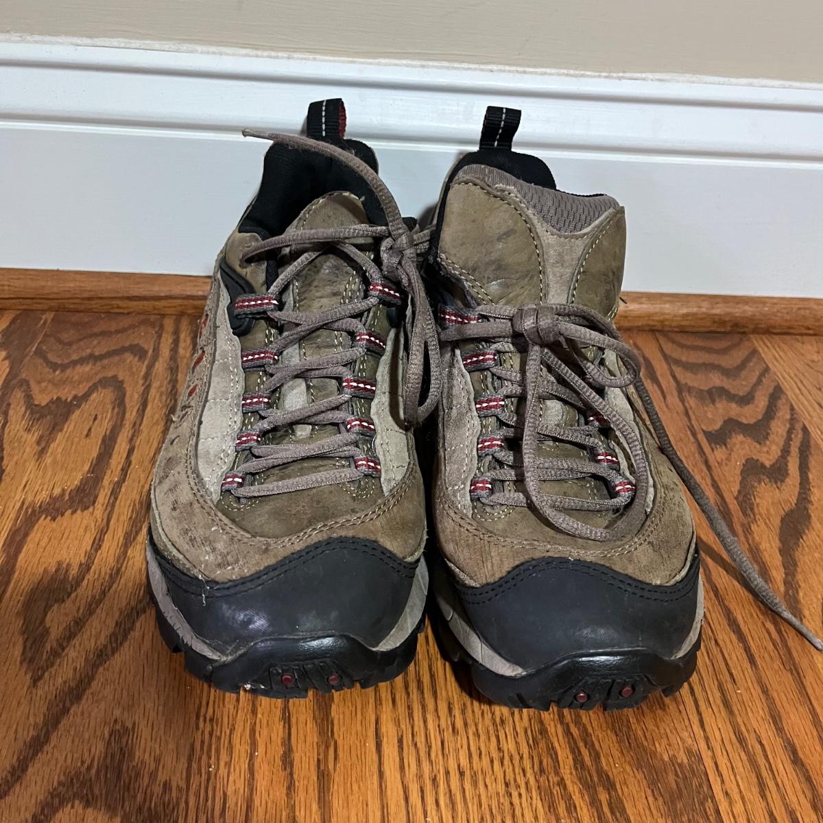 Lot contains Shoes in size 8 including Vibrant, Reebok, Merrell, Hi-Tec and Scarpa shoes.