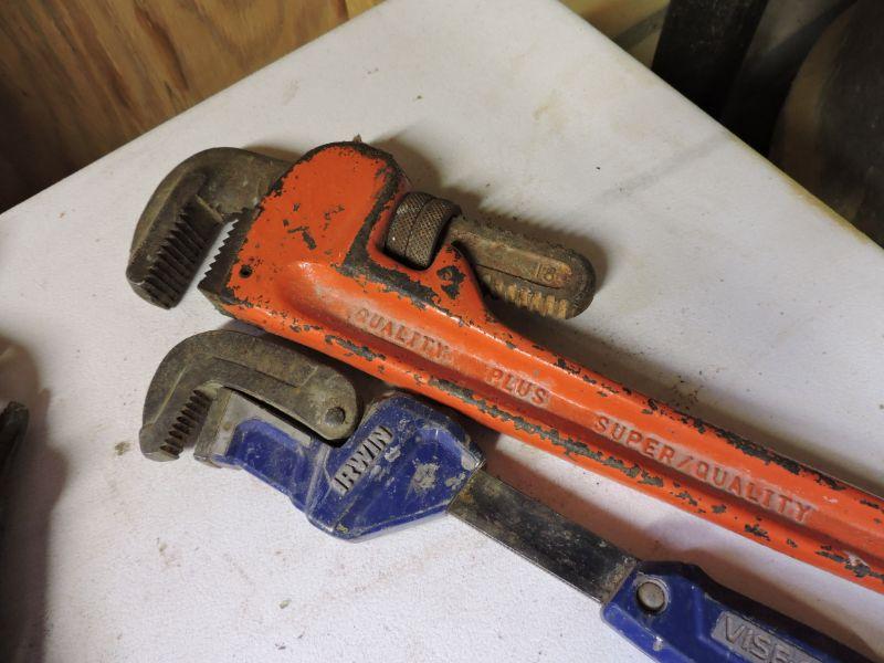 Vice grip and large pipe wrench. Please read Terms and Conditions before placing a bid. Pick up is Friday, October 25th between 4 and 7, and Saturday, October 26th between 9 and 1. Please bring boxes, tools, and muscle to help move your items. Props included in photos are not included in listing. All measurements are approximate.