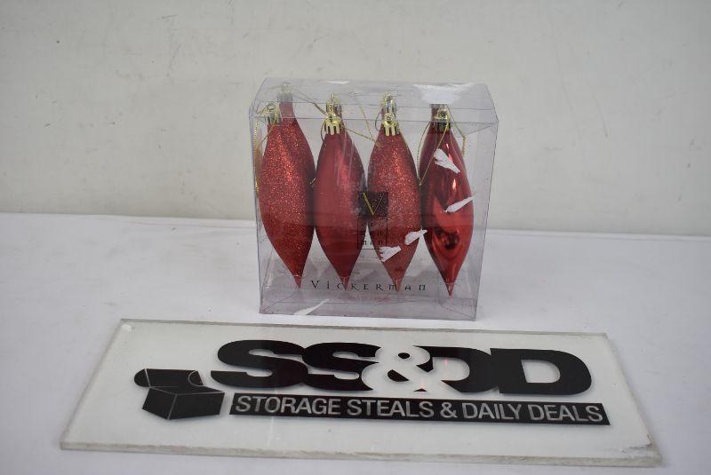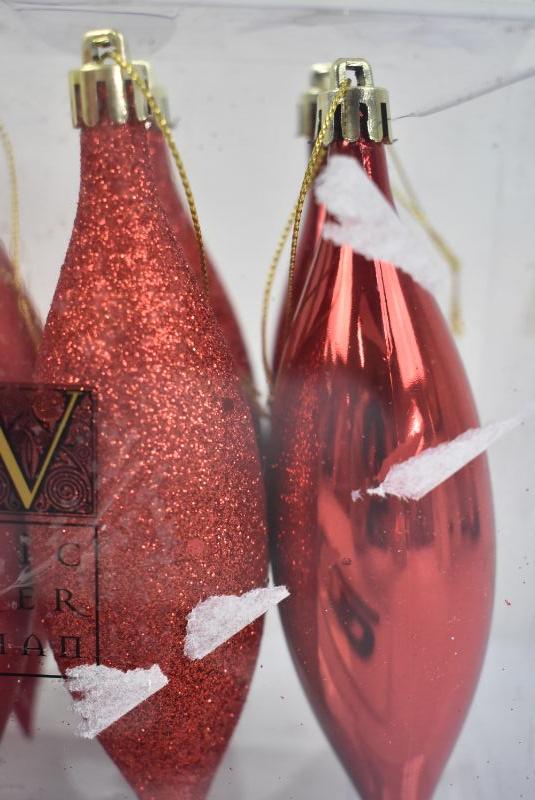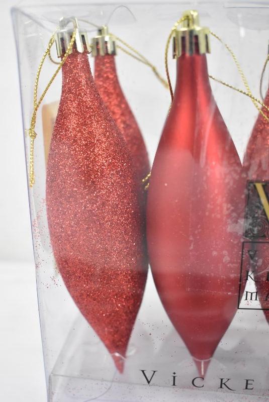 Vickerman 5.5" Finial Drop Christmas Ornaments, Pack of 8, Red - New