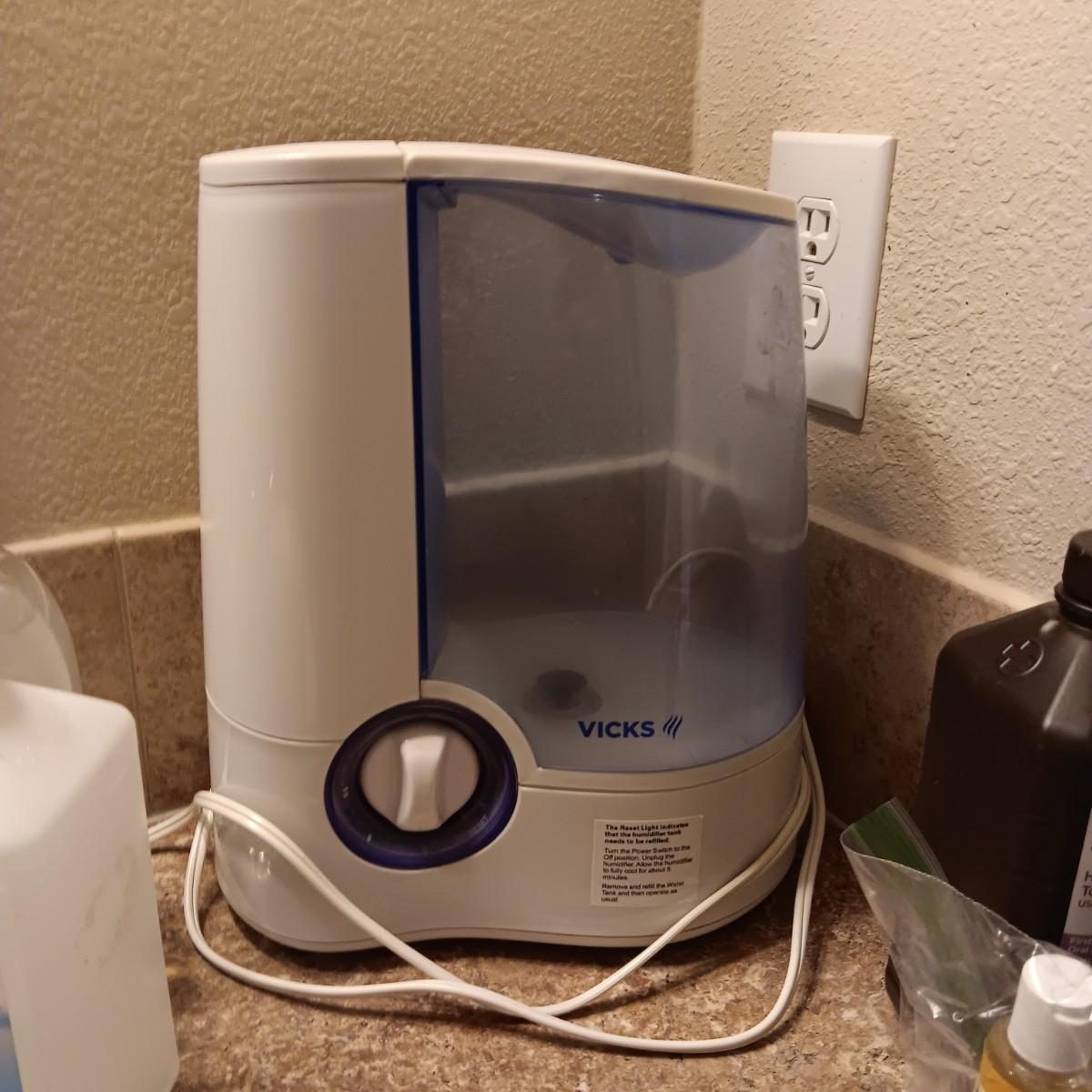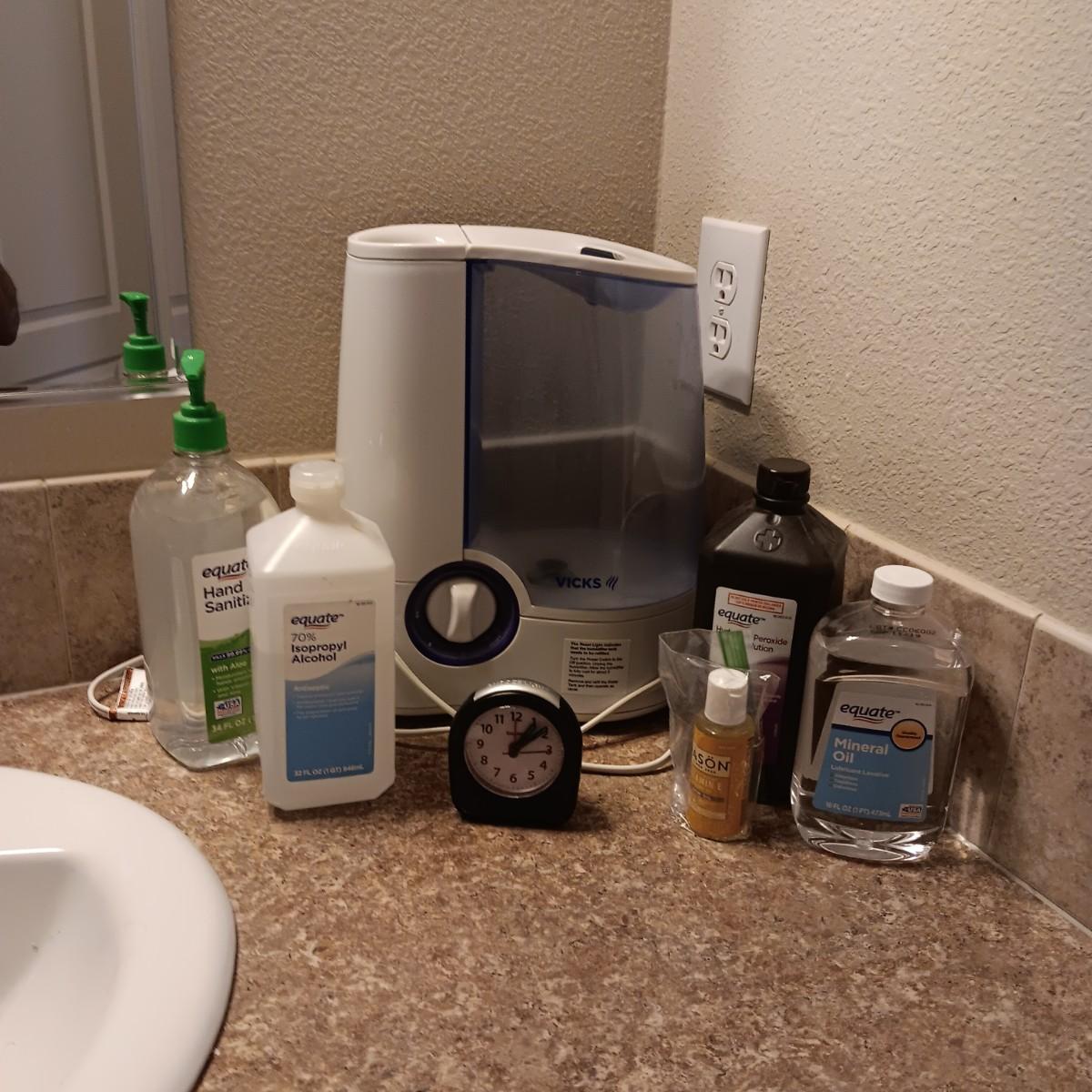 VICKS HUMIDIFIER, TRAVEL ALARM CLOCK AND TOILETRIES
