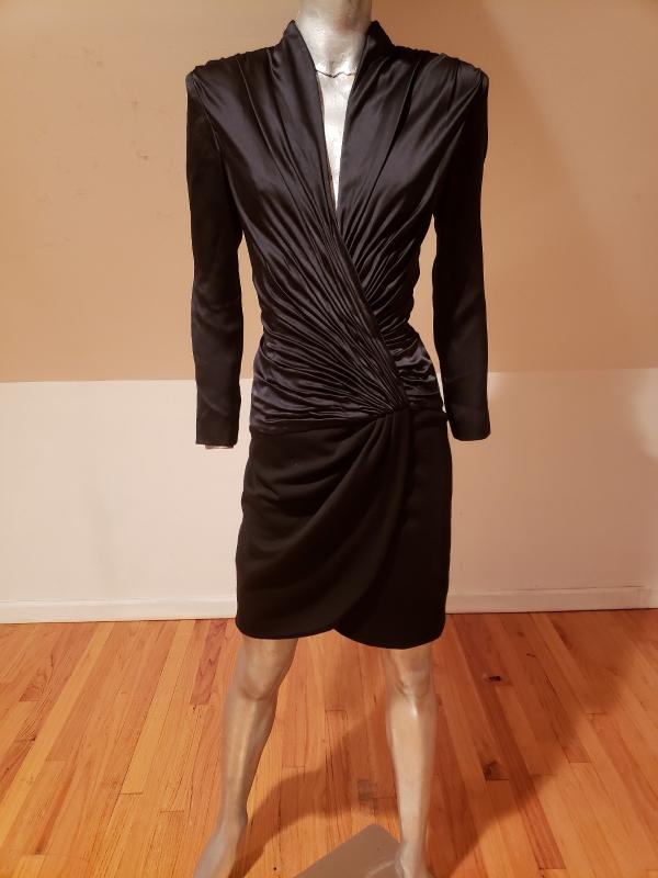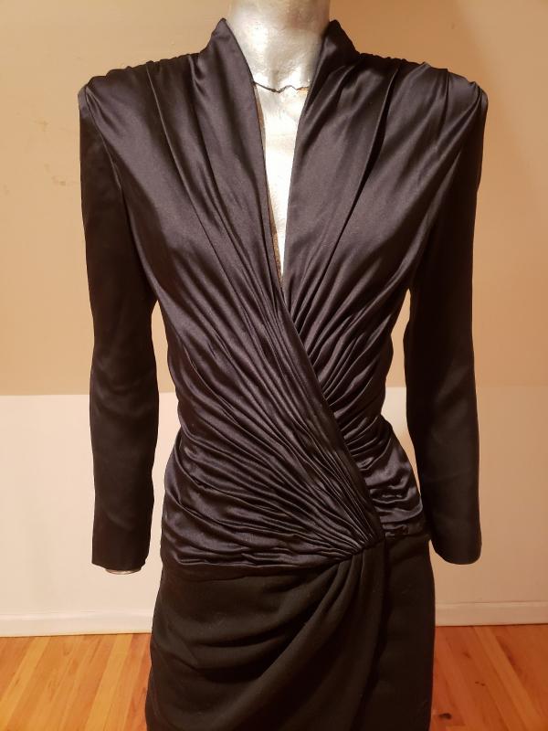 Magnificent vintage Vicky Tiel semi wrap with stunning shirred ruched details at bodice.