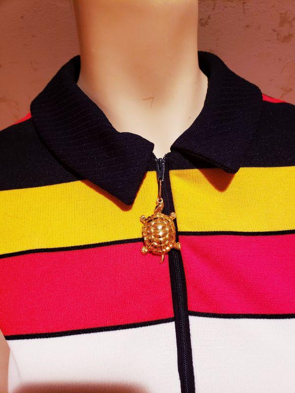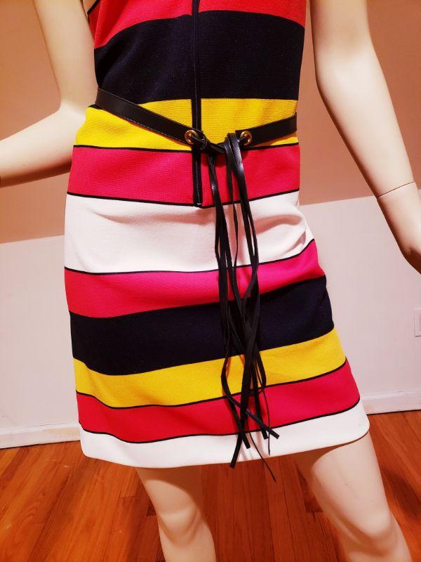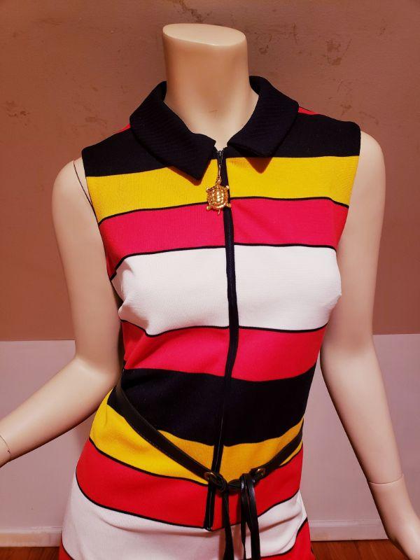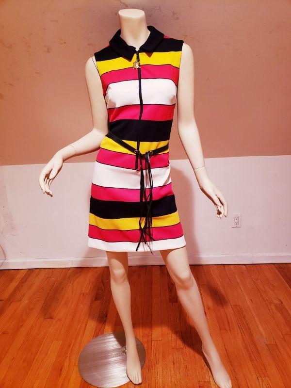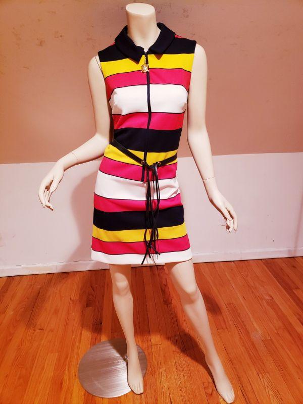 Gorgeous 1970s mod vintage dress by Vicky Vaughn Horizontal Blue, Red, White stripes.