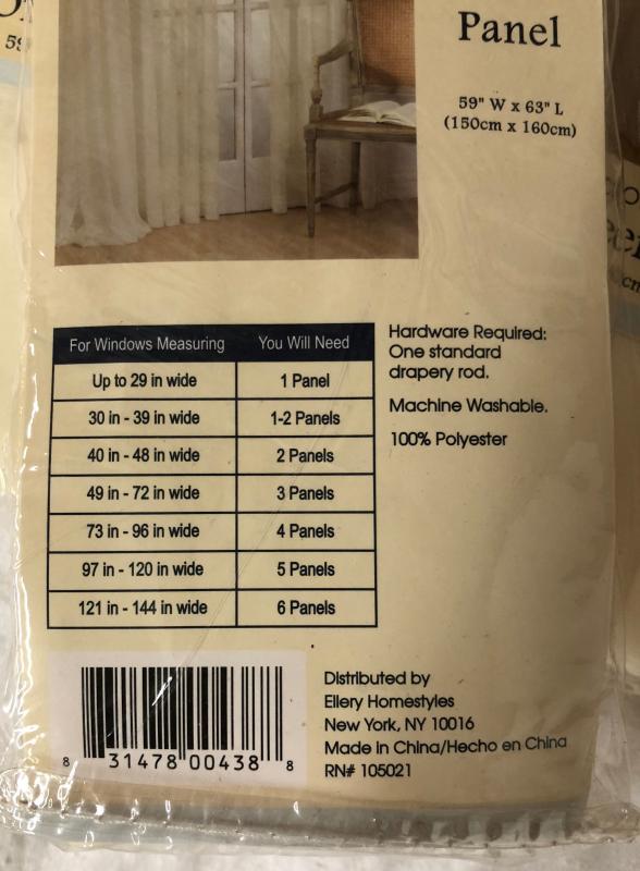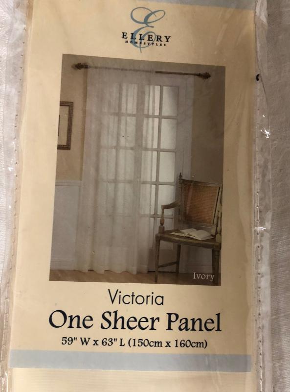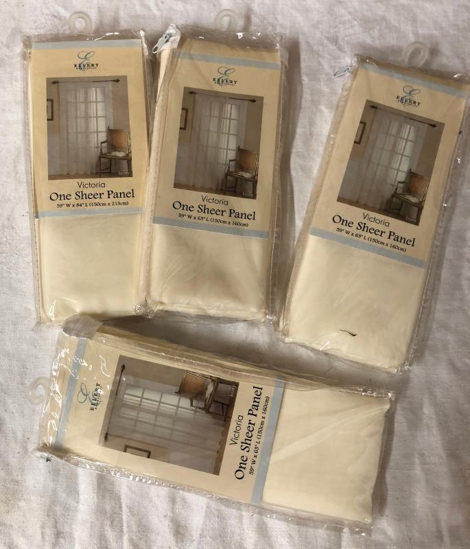 Here are four(4) Victoria Sheer Panels by Ellery Homestyles..They measure 59"W x 63"L each...New in the package....