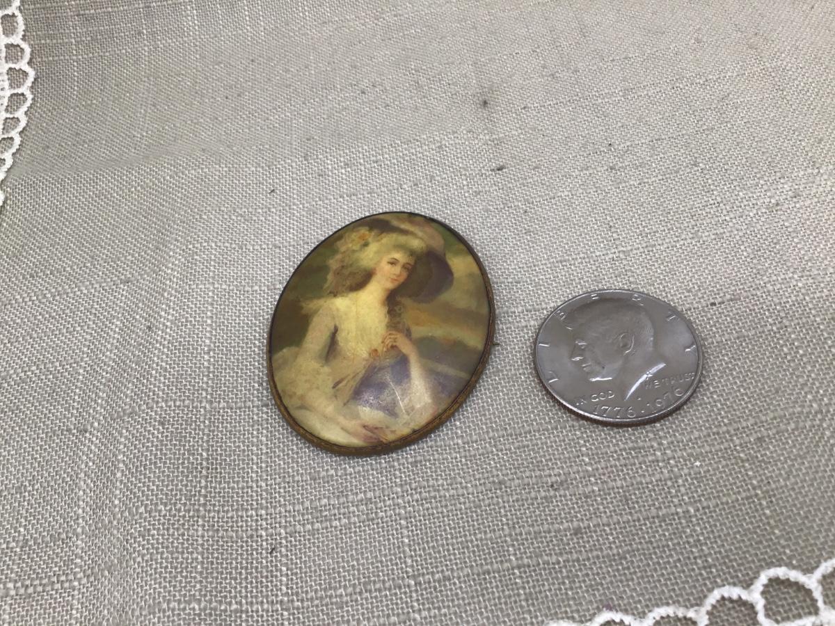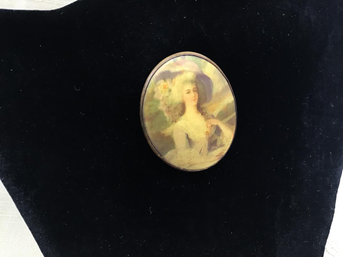 Victorian Antique Vintage Framed Cameo Portrait Brooch Pin