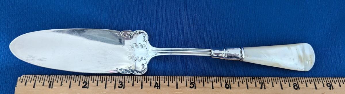 Victorian Cake Server Mother of Pearl handle Sterling Band. Blade is not marked.