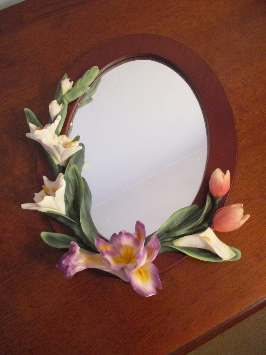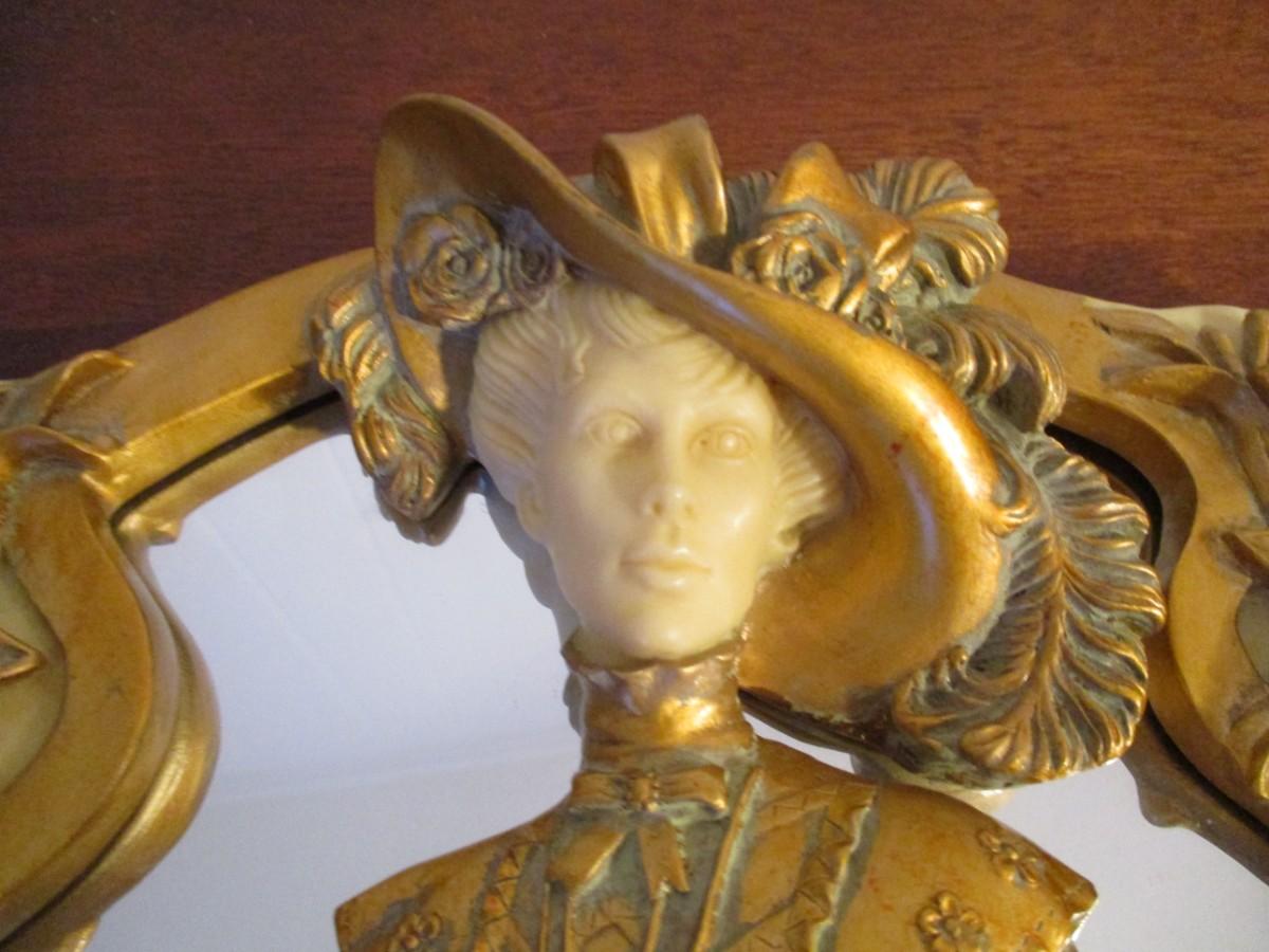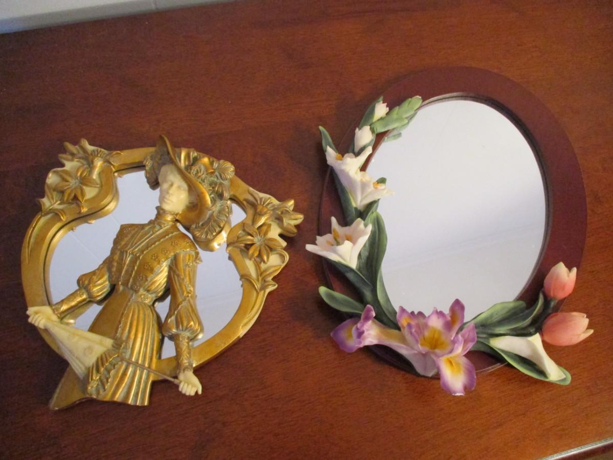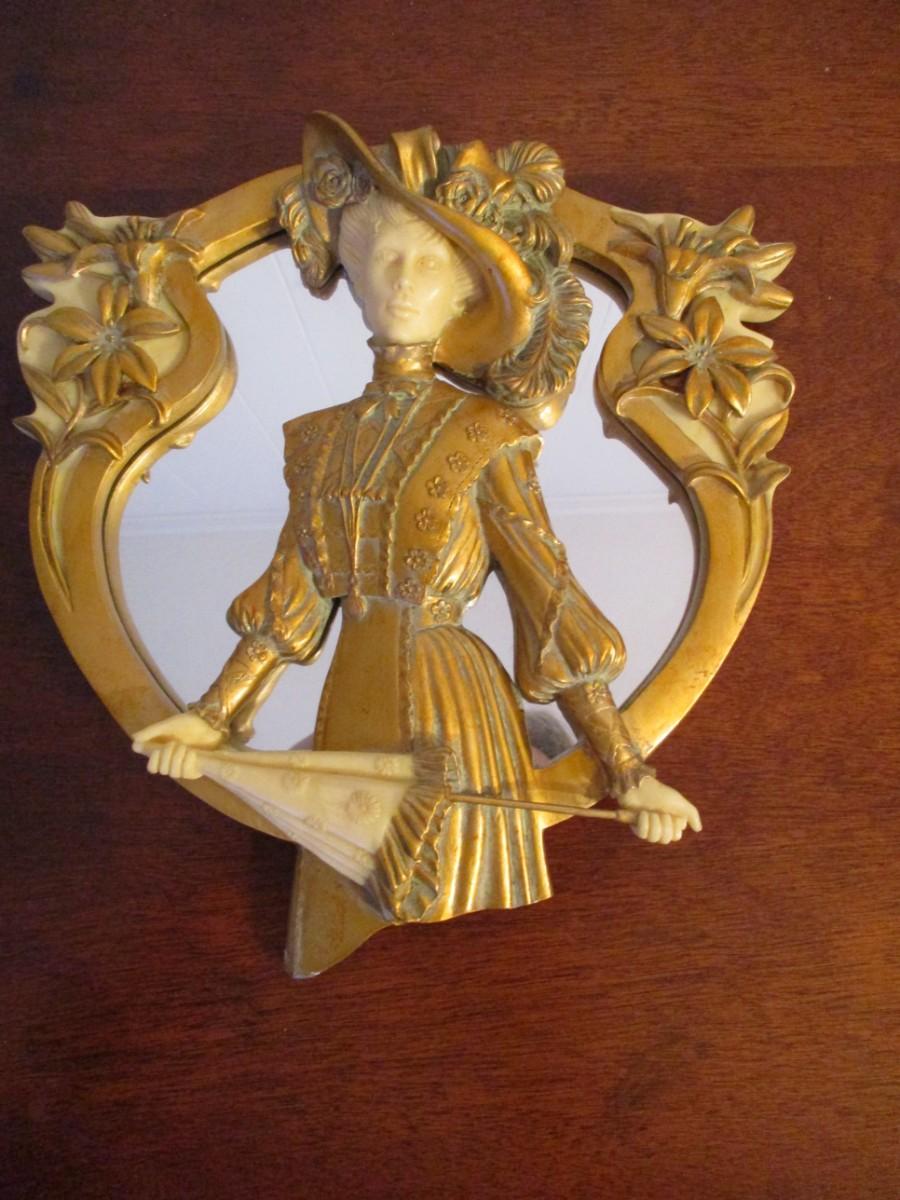 Victorian Cameo Woman Mirror Plaque & Flower Mirror