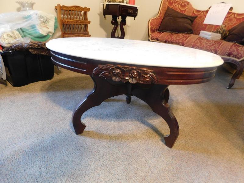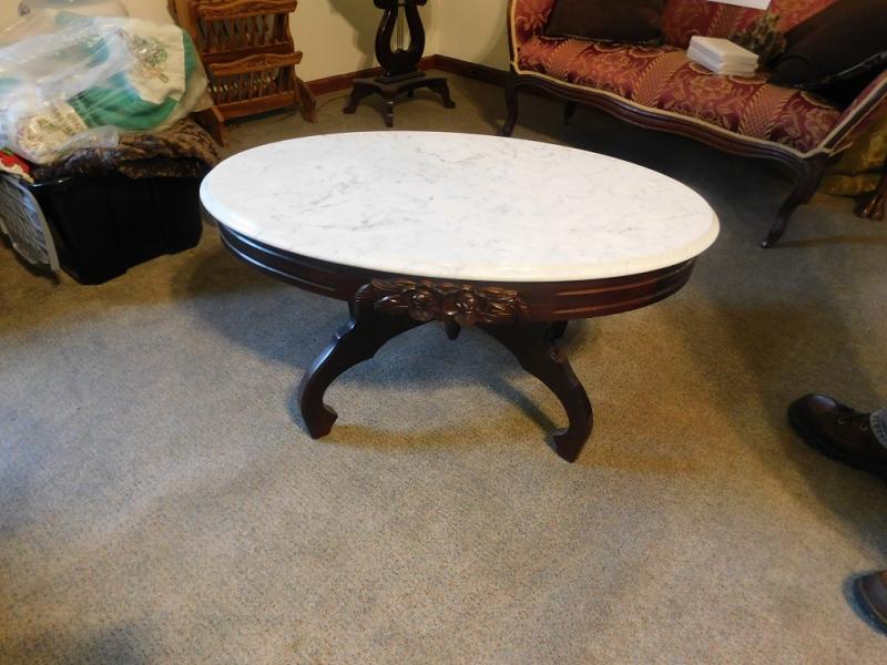 Victorian Coffee Tablw with Marble Top and Carved Foliate