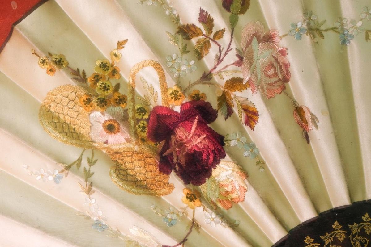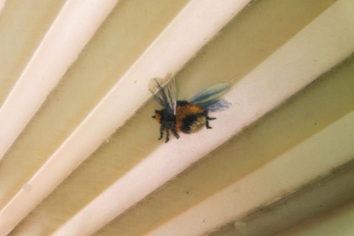Victorian Continental Silk Embroidered Fan W/ Bee
