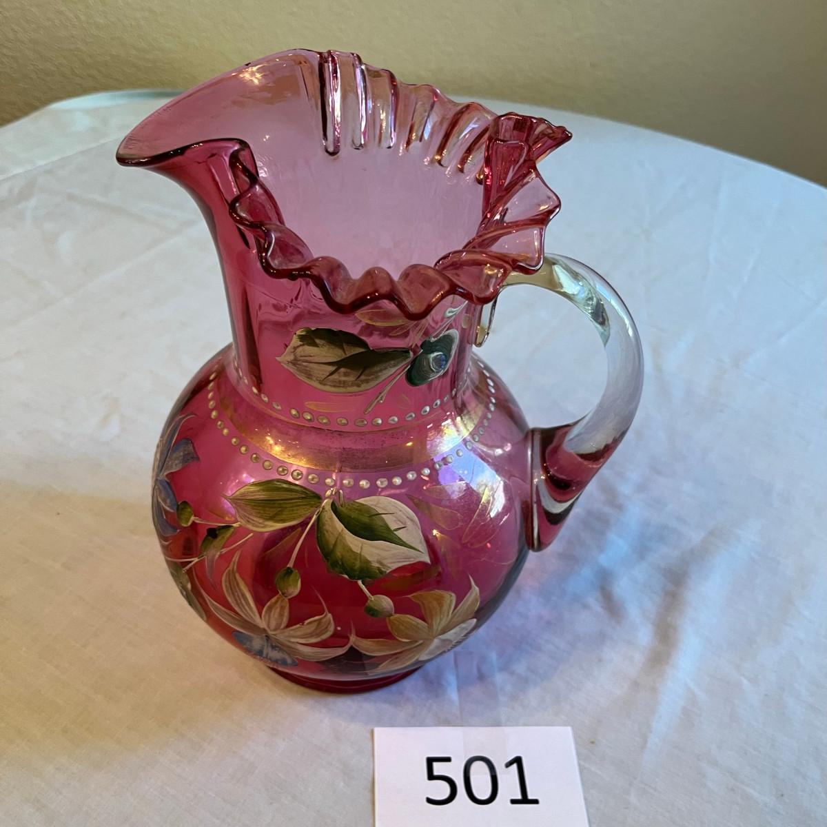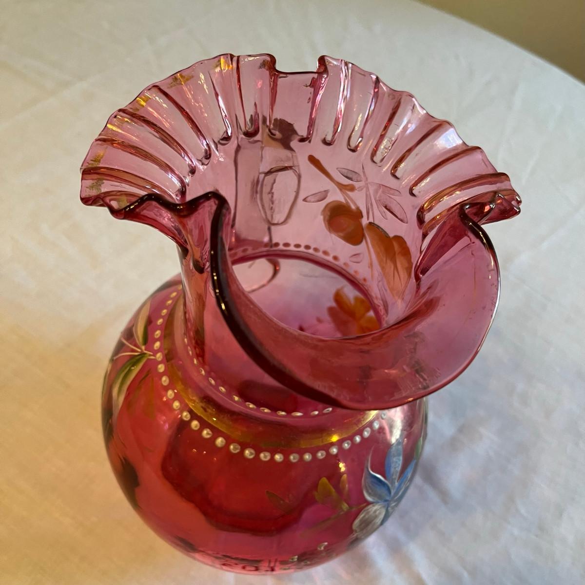 I'd guess this was Northwood. It is not signed, so no promises on that! Very classy piece. Enameling & gilding is in great shape! Not too long ago I would have sold this at a show for $300!