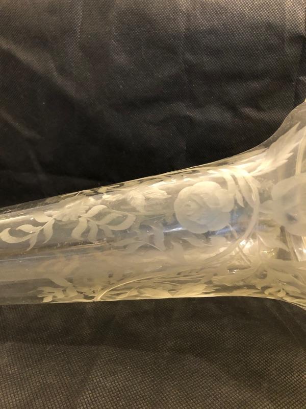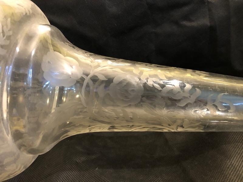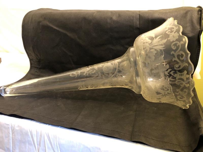 Large vintage glass flower vase  21in tall 9.5in diameter at the top