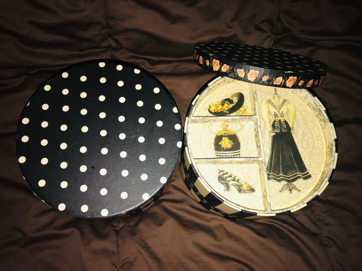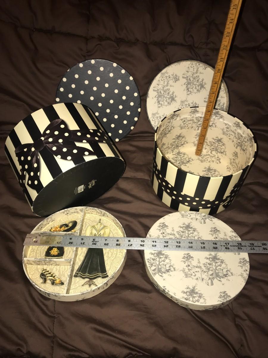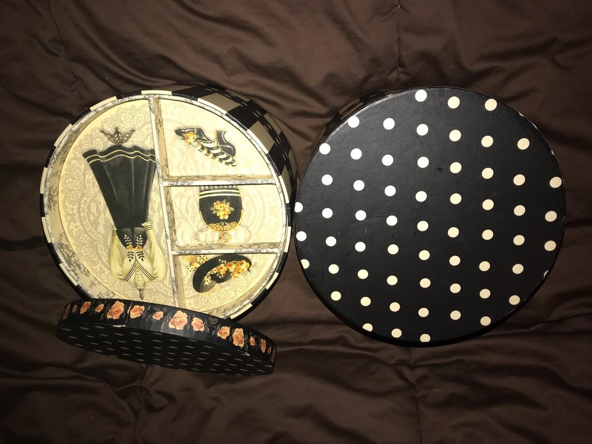 Victorian Designs in two Hat Box Style Storage boxes