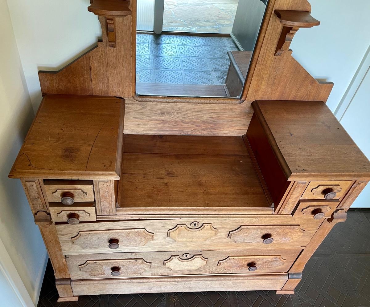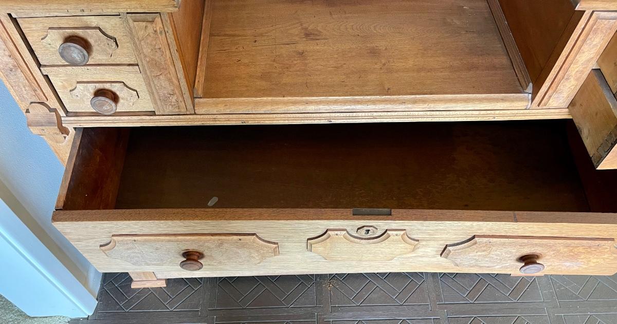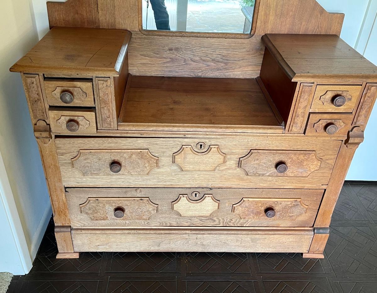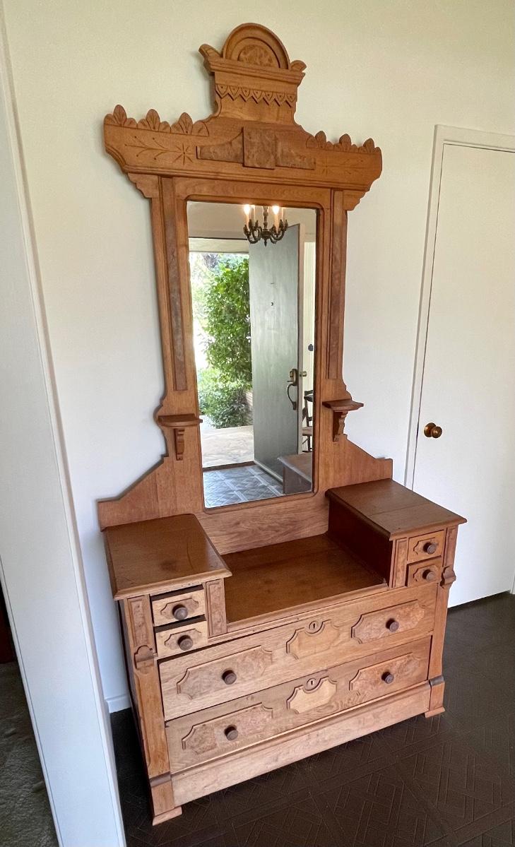 Antique Eastlake Wood Large Mirrored Victorian Vanity Dresser - ARCADIA