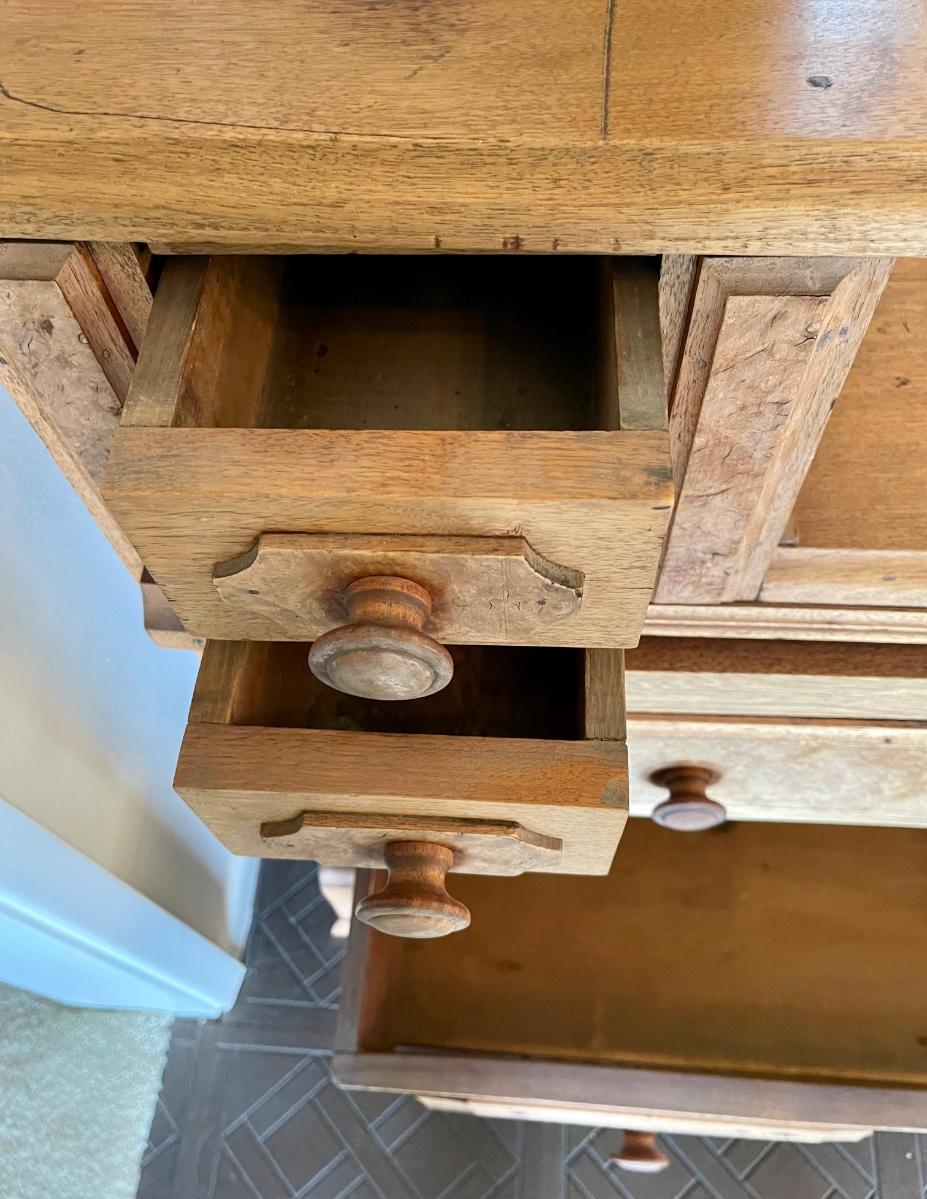 In good condition for its age. The veneer has some cracks. In one piece but looks like the top has wood brackets held in place with a couple screws. Overall height 89” and 46” across. 6 drawers. *PICK UP IN ARCADIA SATURDAY MARCH 25TH BETWEEN 9am & 11am*