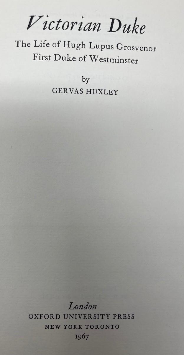 Description: Victorian Duke The Life of Hugh Lupus Grosvenor by Gervas Huxley copyright 1967; Material: Paper