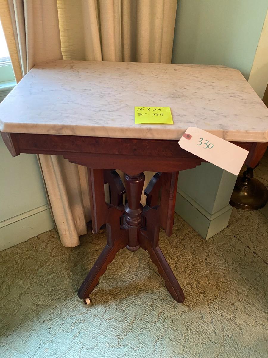 LOT 330 Victorian East Lake Marble Top Accent Table 16x34x20