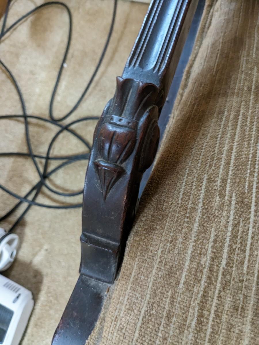 Very comfortable, upholstery is in wonderful condition as well is the wood