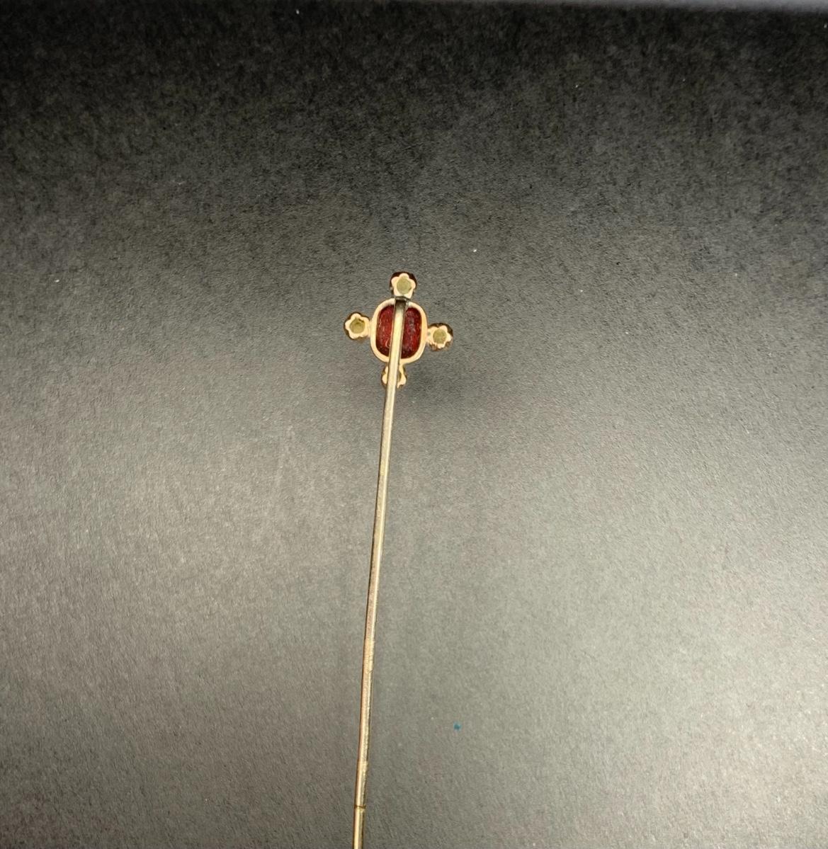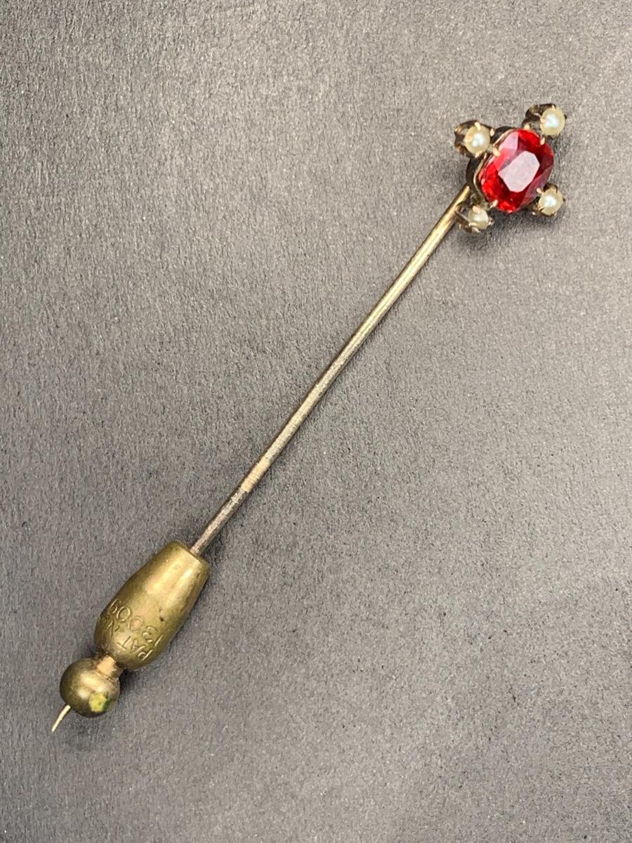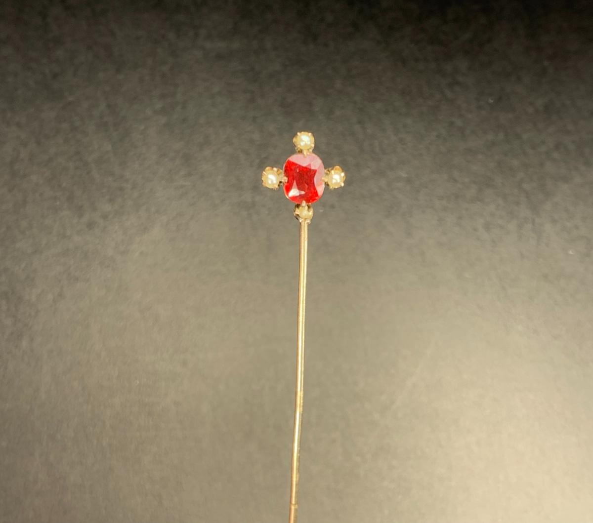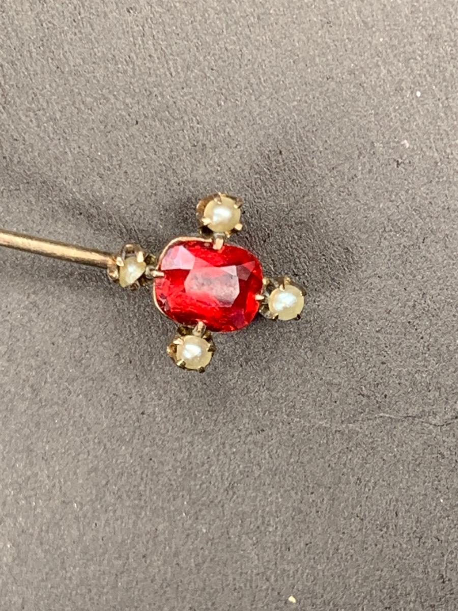Victorian English 9ct Gold Ruby & Pearl Hat Pin