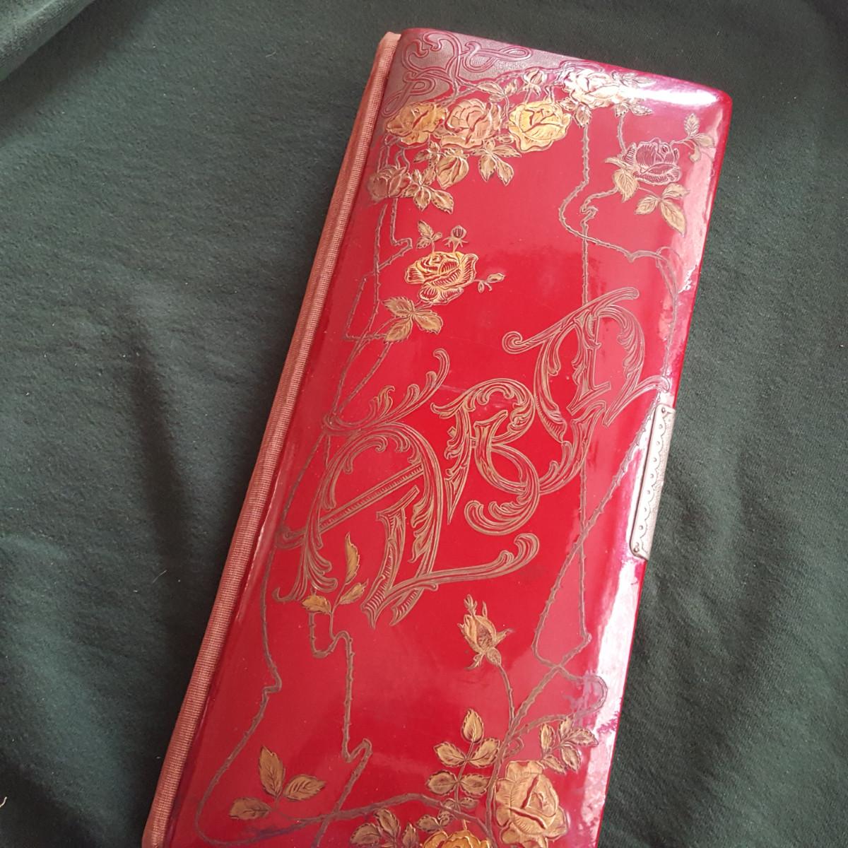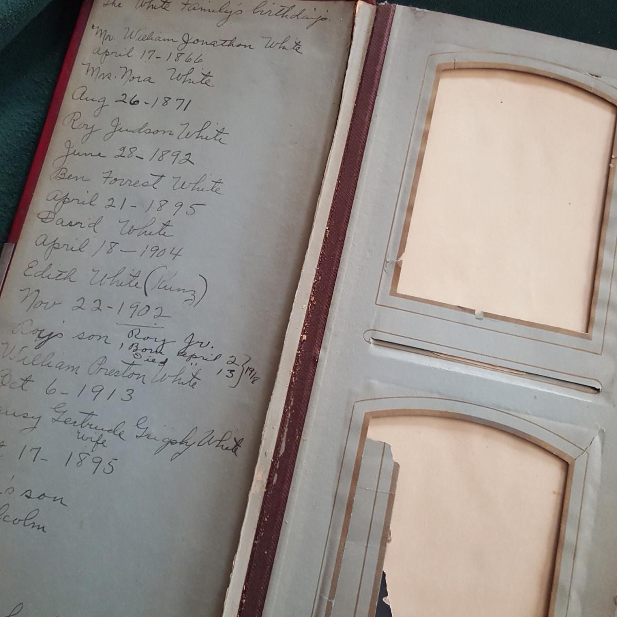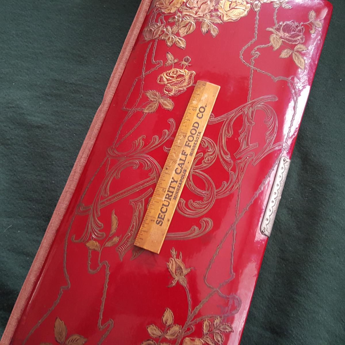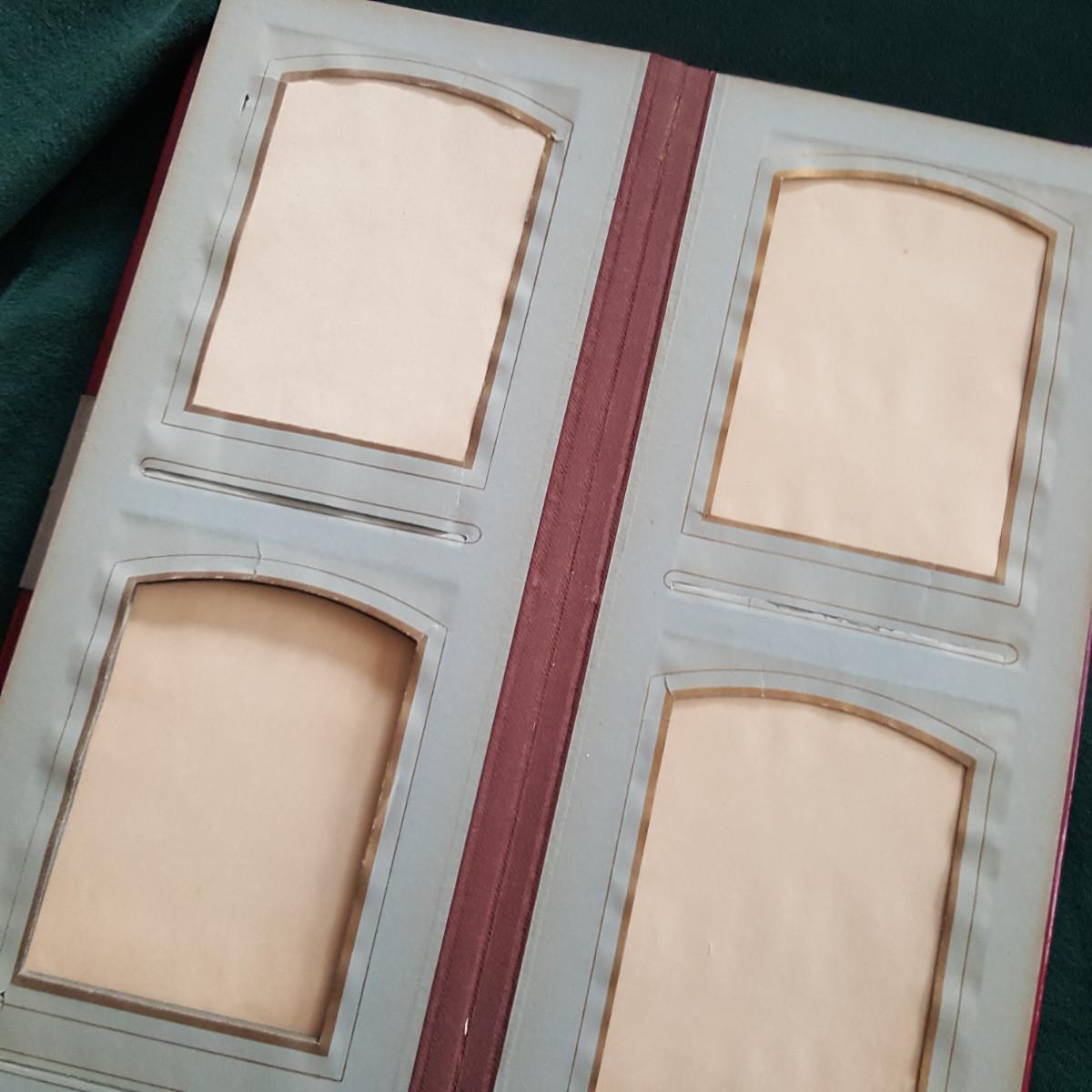 This auction lot is for a Victorian Era Photo Card Album. The album is guite a pretty but has some interior condition issues as it is missing the lower portion of its latch and some of the photo card holding positions have been torn. The front inside cover has a written list of the birthdays of family members. The album measures about 16-inches long X 7-inches wide X 2.5-inches deep. The album could be easily repaired and filled with your family or some other nifty photo cards. You can get as creative as you like once you bid high and bid often to get this beauty.