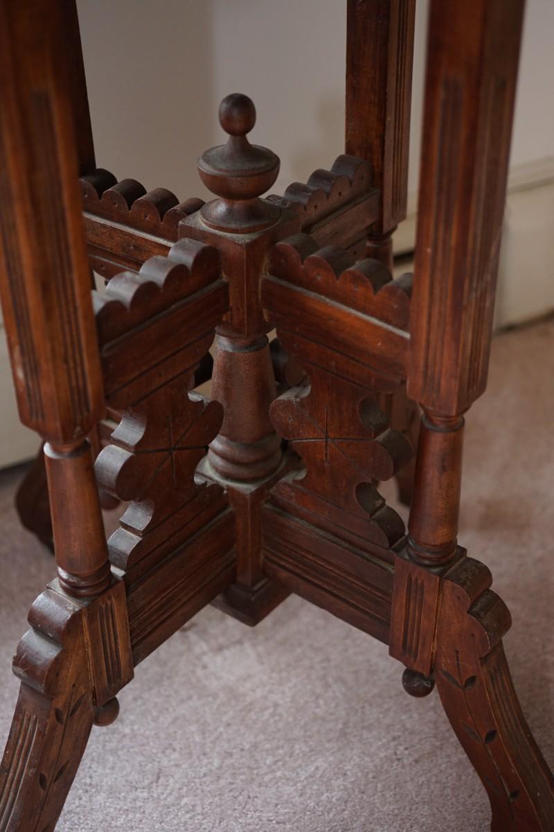 VICTORIAN ERA WALNUT PARLOR TABLE W/ DETAIL CENTER POST