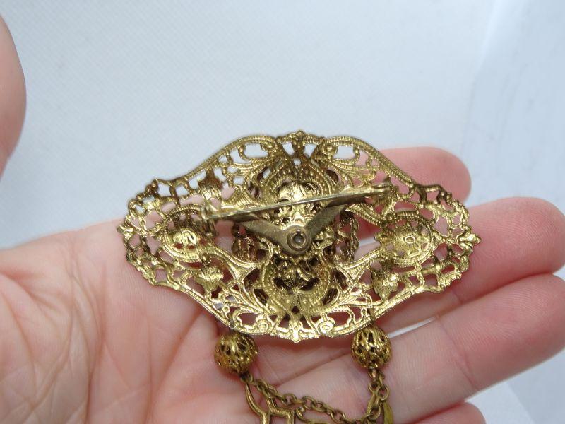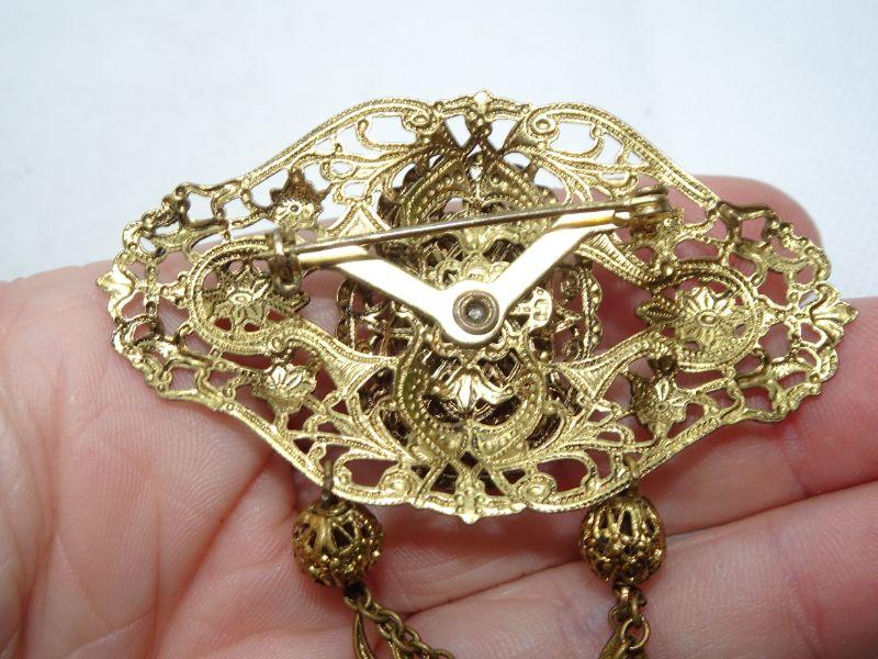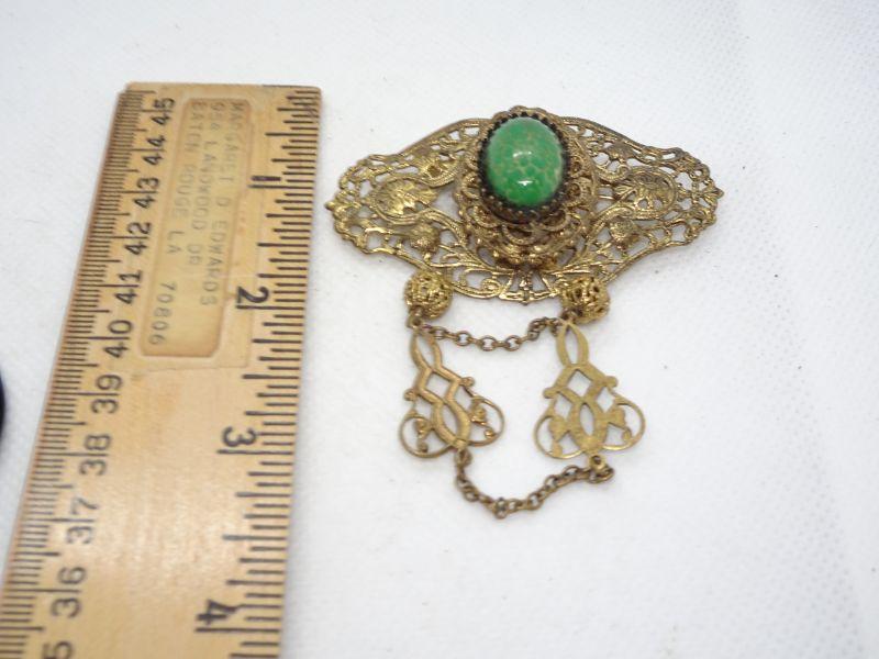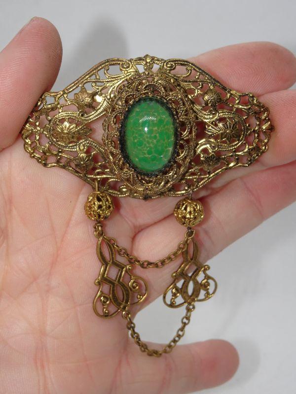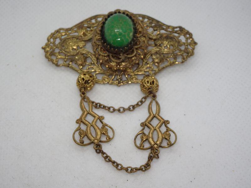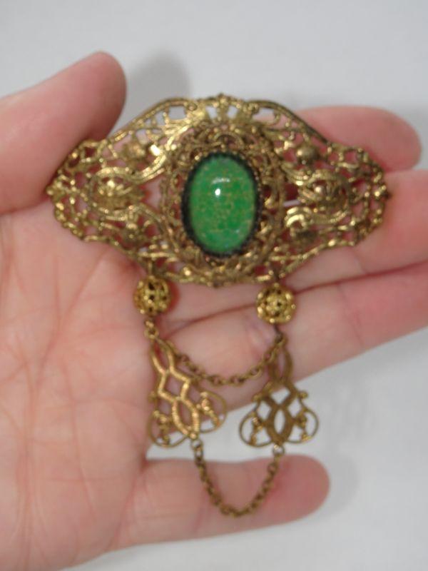 Victorian Filigree Collar Brooch, Green Stone - Beautiful!