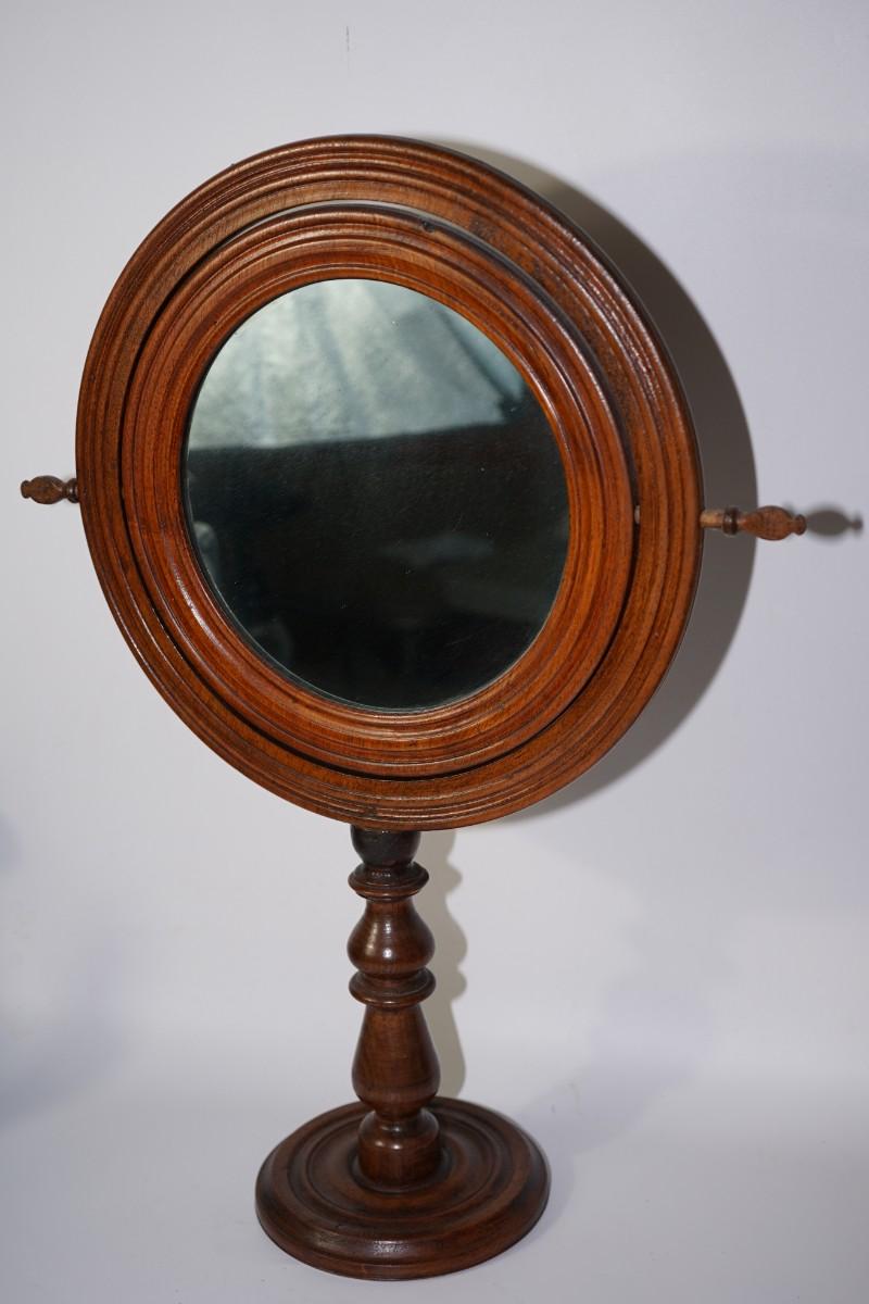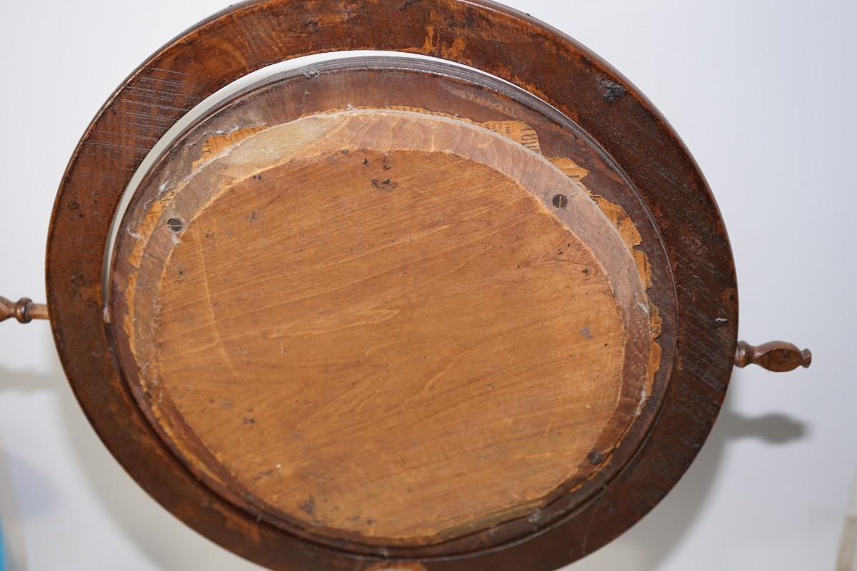 VICTORIAN FREE-STANDING WOOD SHAVING MIRROR ON WOOD PLATFORM SWIVEL