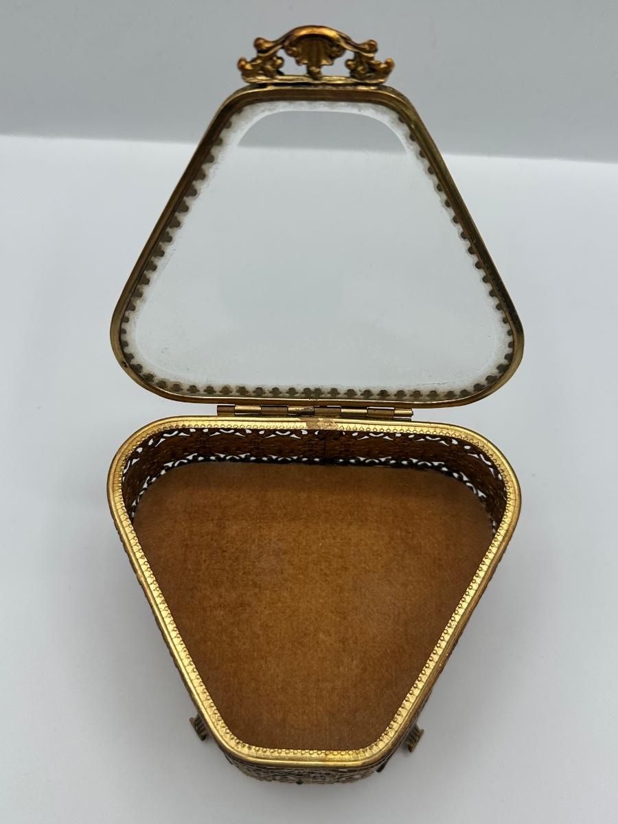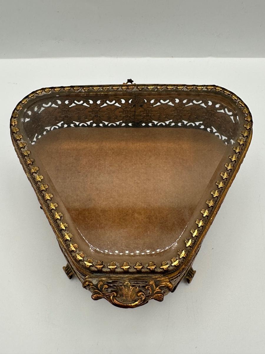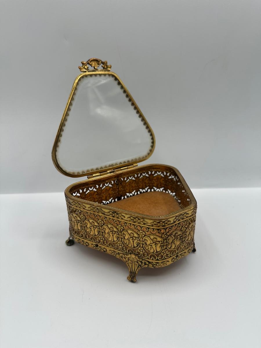 Victorian Gold & Beveled Glass Footed Jewelry Case