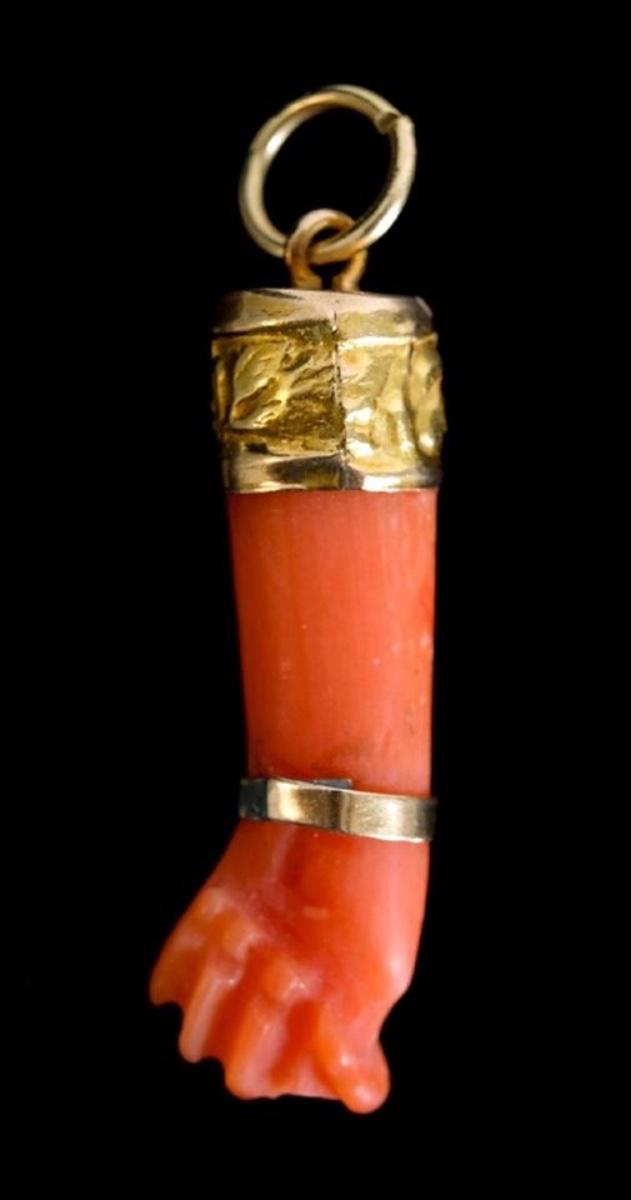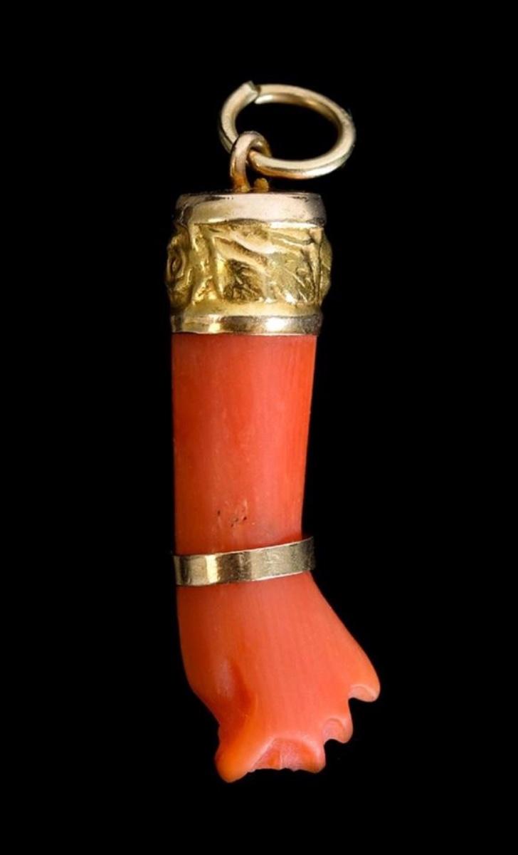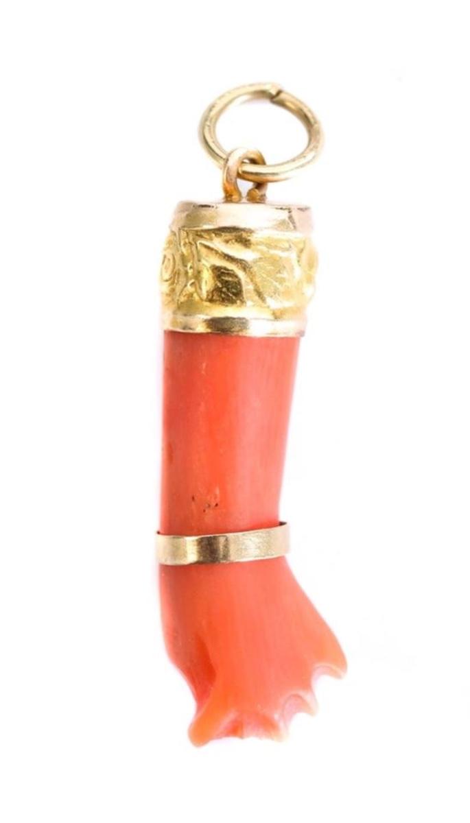 Victorian Gold & Coral Figa Fist Charm Pendant