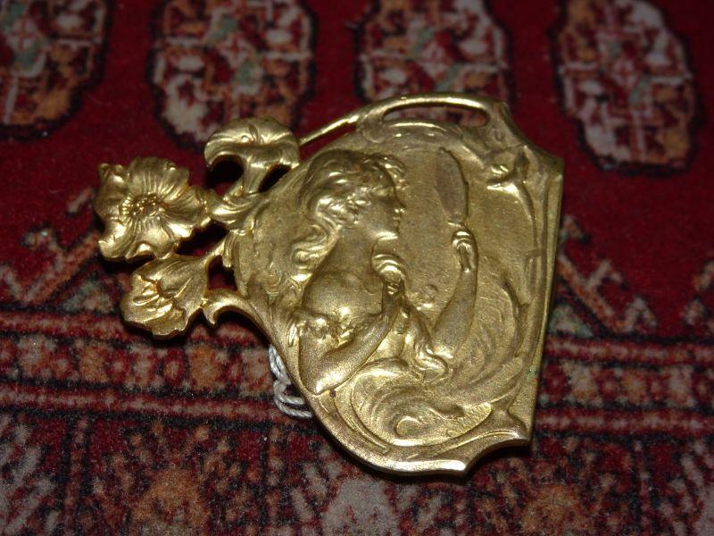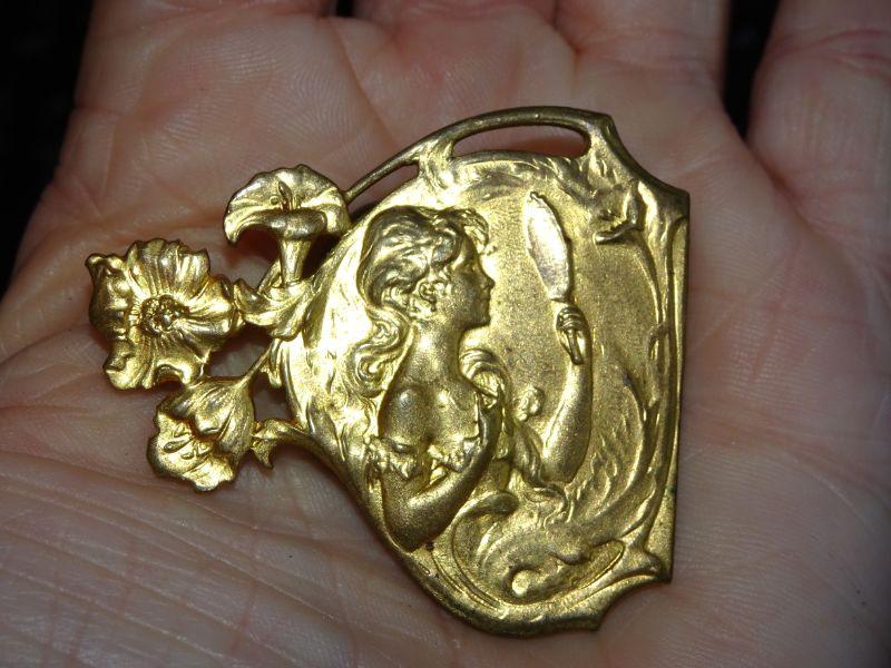 Victorian Gold Tone Scarf Clip, Lady looking in mirror