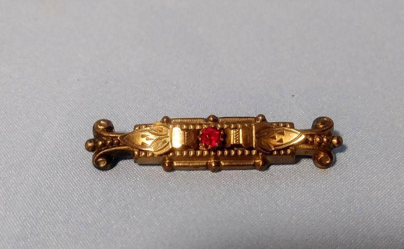 Victorian Gold Wash Bar Brooch with Ruby Center Stone