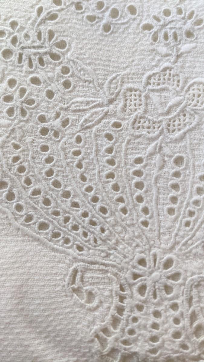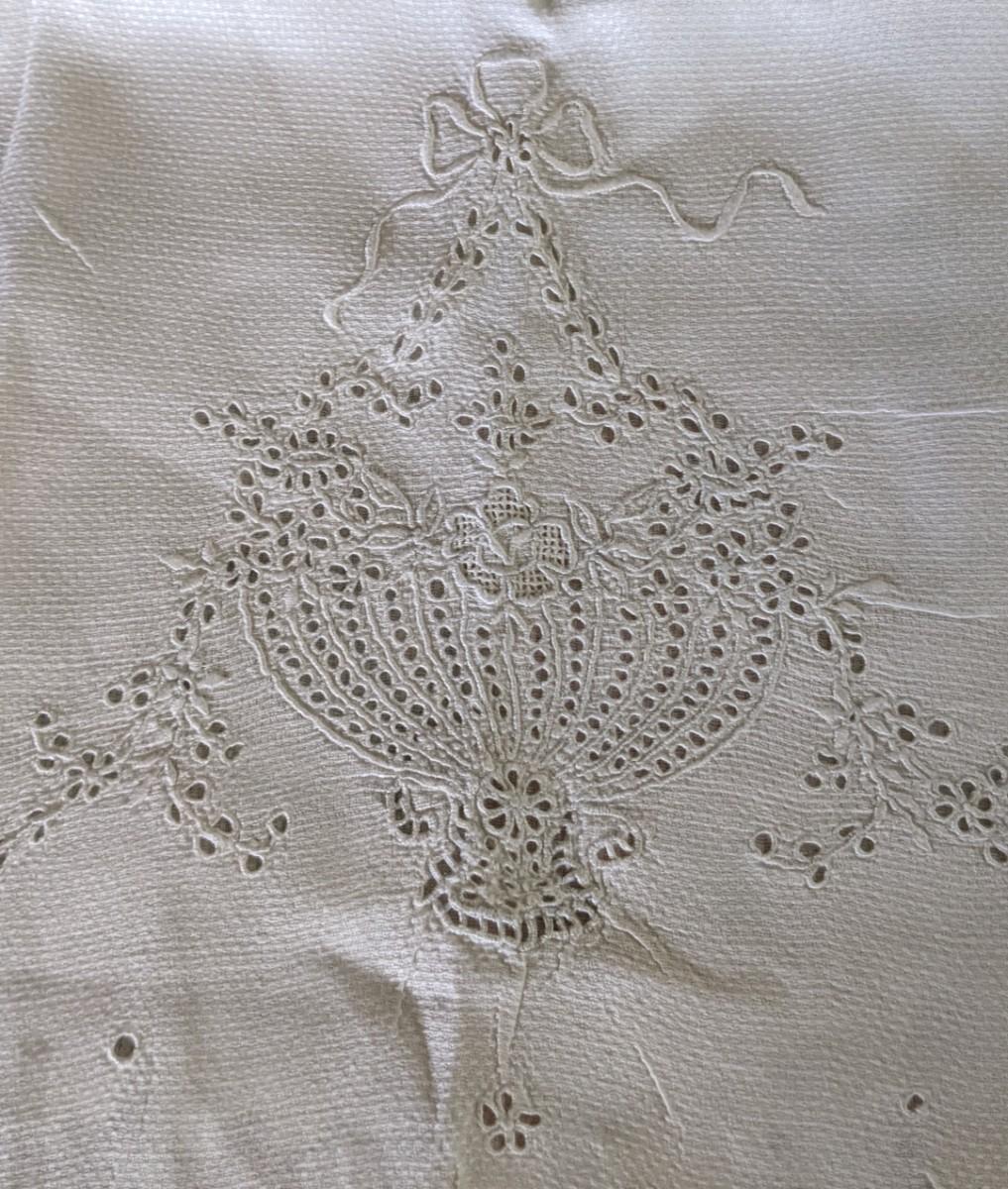 Victorian handmade Embroidery Broderie Anglaise White Linen towel