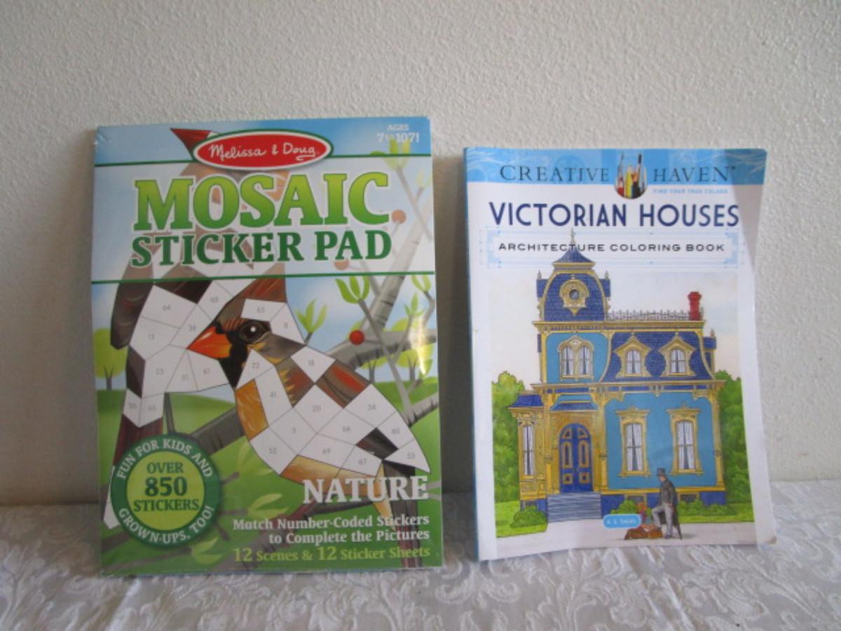 Victorian Houses adult coloring book, Mosaid sticker pad