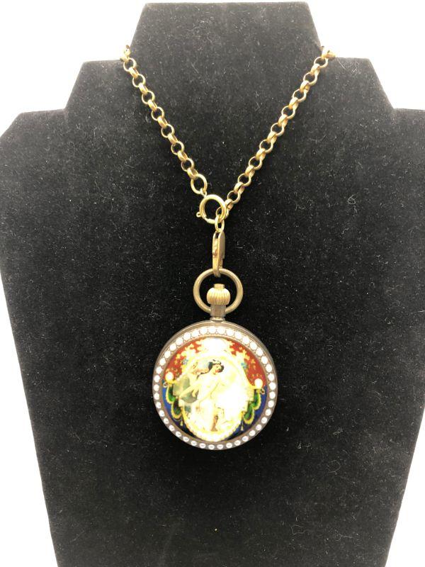 Victorian Image Decopage & Faux Pearl London Pocket Watch YD#020-1220-05062