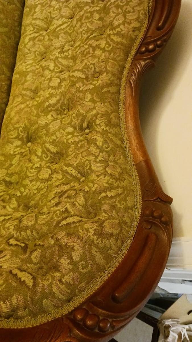 Beautiful antique hand-carved victorian loveseat. 60" l x 33" w x 31" d. Upholstery needs repair.