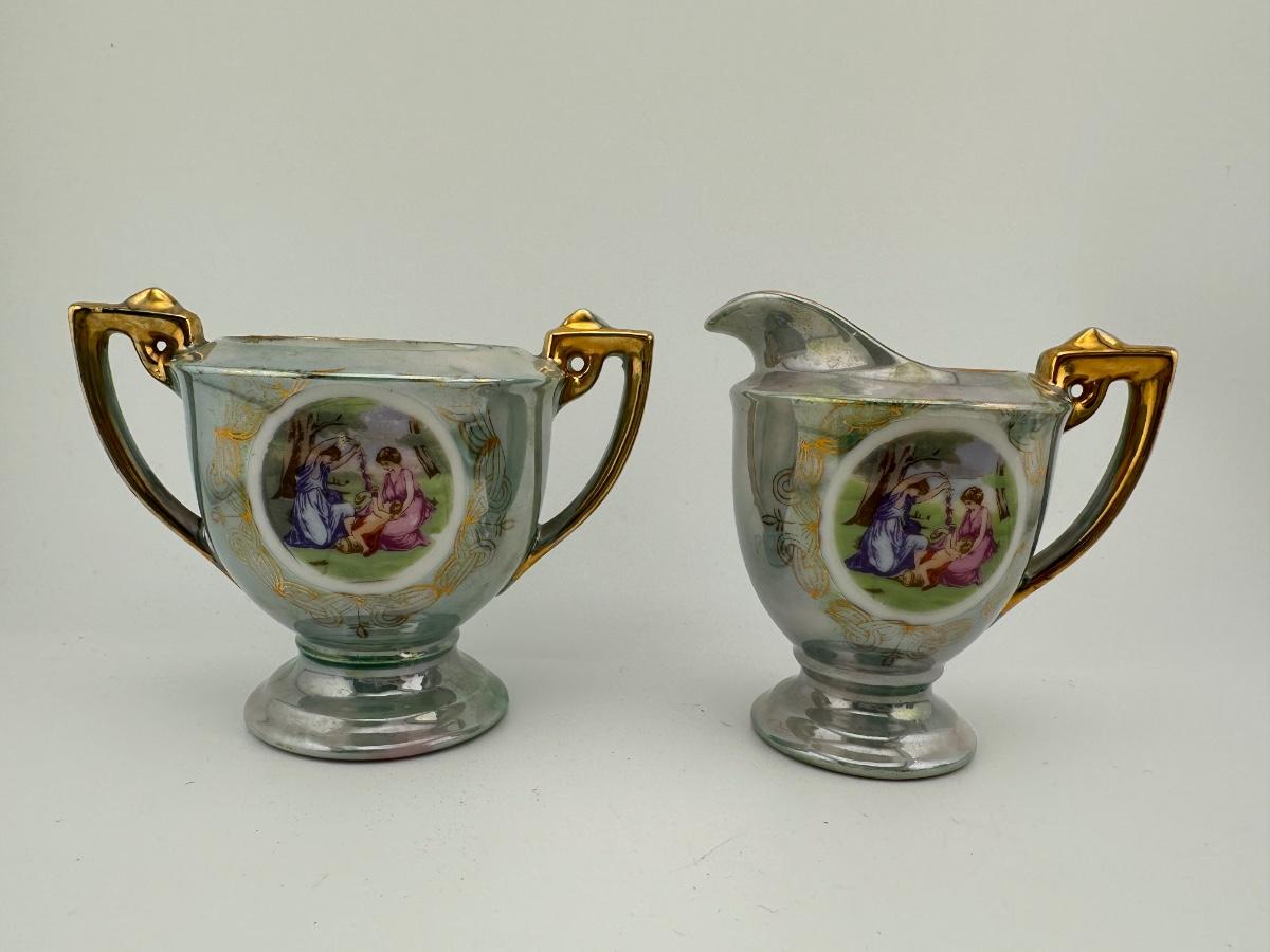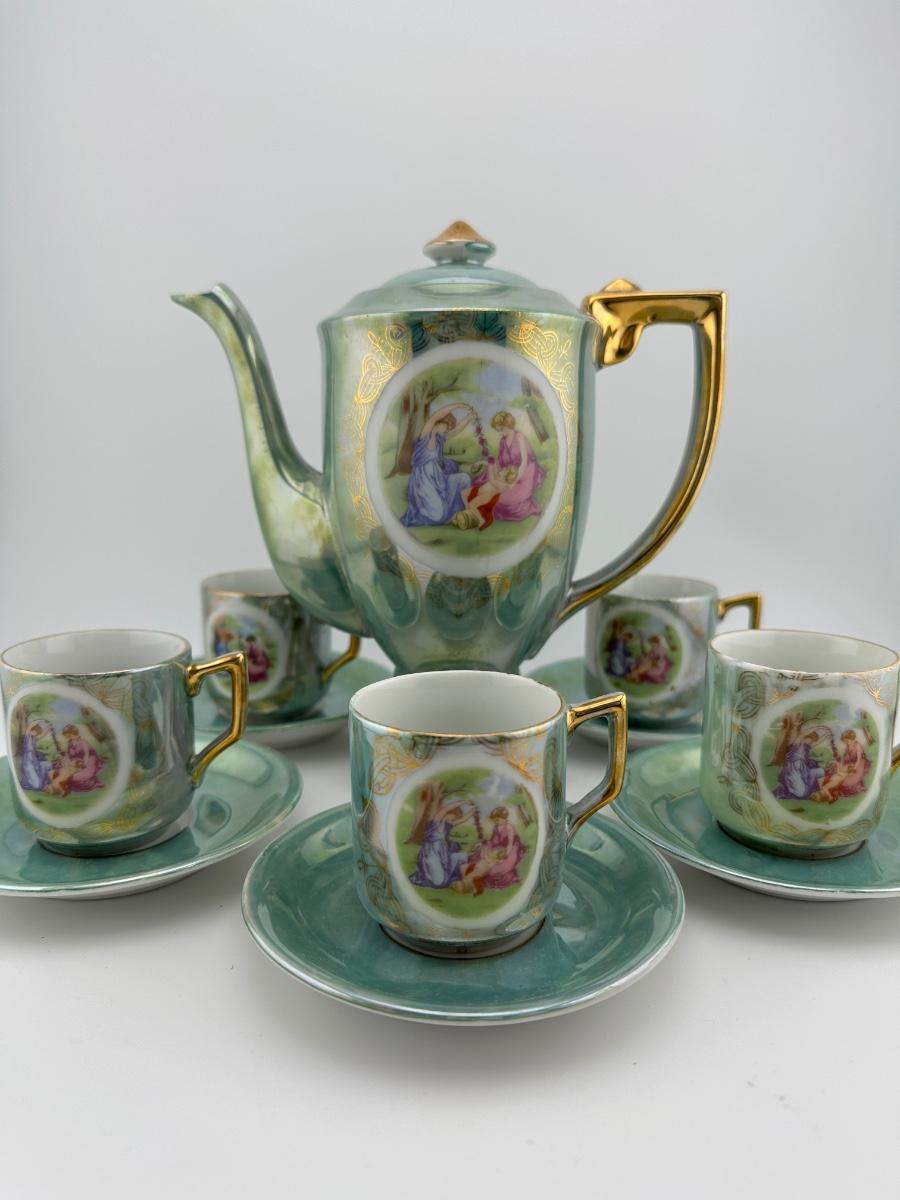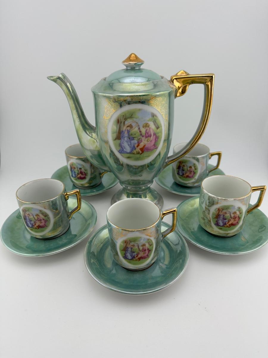 Victorian Lusterware Porcelain Demitasse Set (See Details)