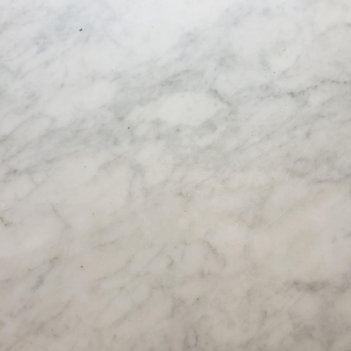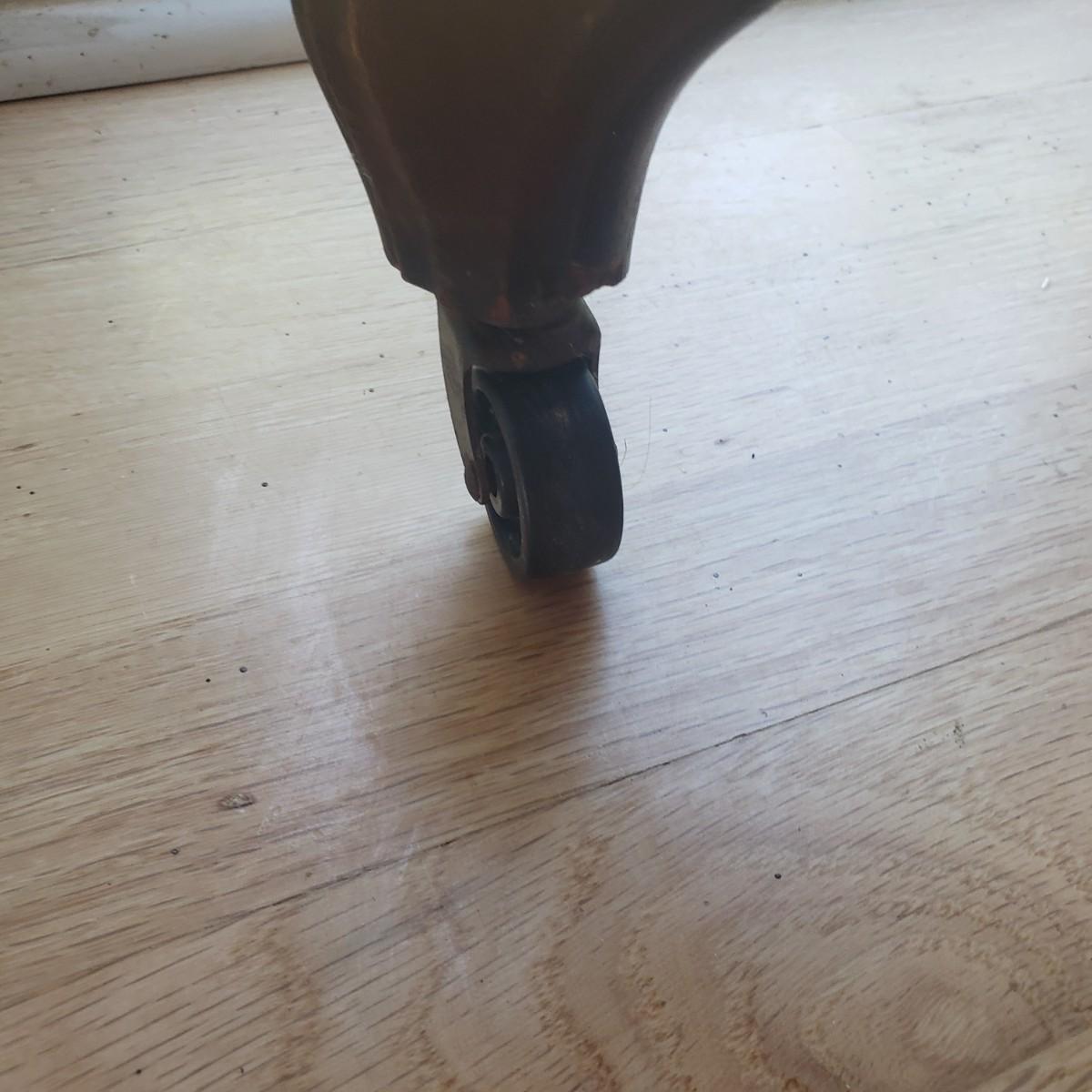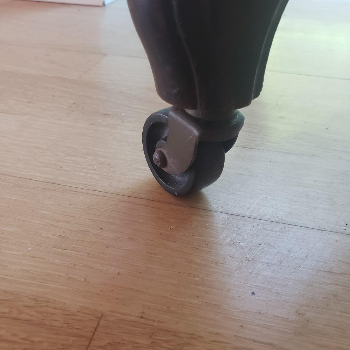 This marble top Victorian-style table measures 36" x 27"x 31" H. The wooden frame sits upon four caster wheels that move with ease. See pictures for details.