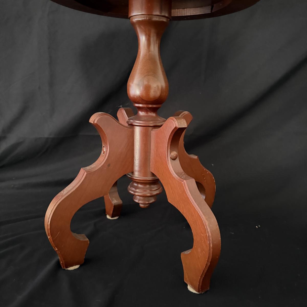 Lot includes a Victorian brand table/plant stand with Italian marble top and wooden base. Table measures 13”D x 19”H.