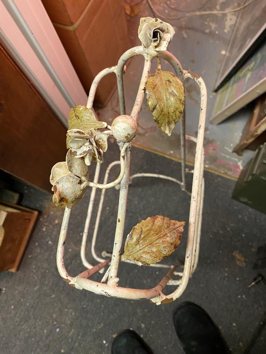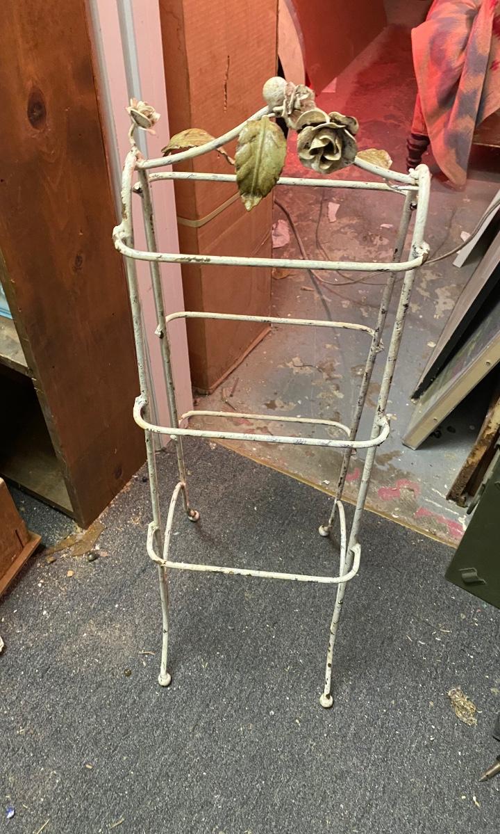 Distressed Victorian style stand, no shelves. Can be used as a rack or yiu can add your own shelves. Approximately 32Hx 9Dx10