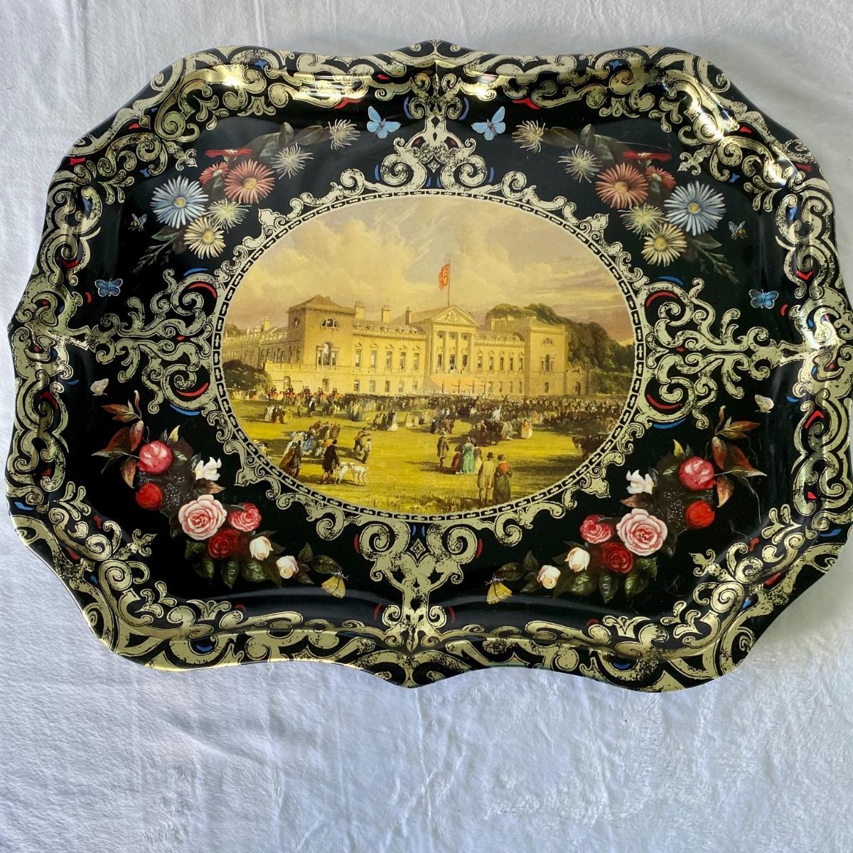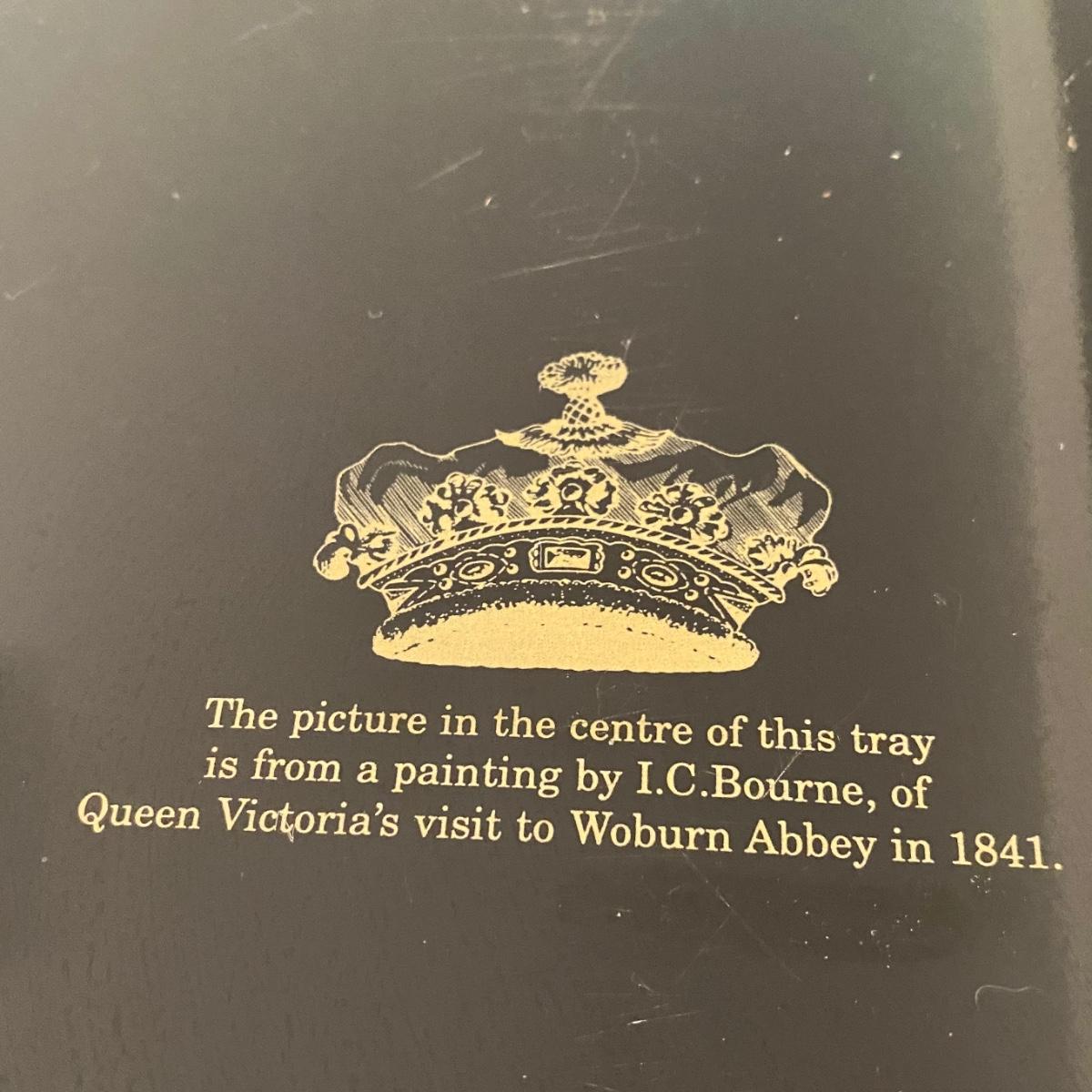 Victorian Style metal tray Queen Mary Royal Collection - England. The picture is from a painting by I.C. Bourne of Queen Victoria’s visit to Woburn Abbey in 1841. Tray measures 22”L x 17”W.