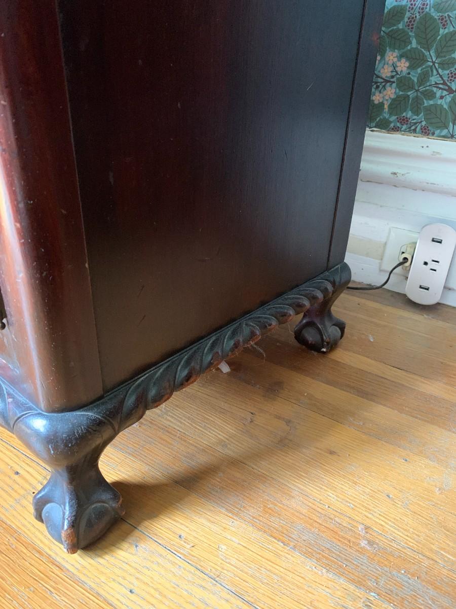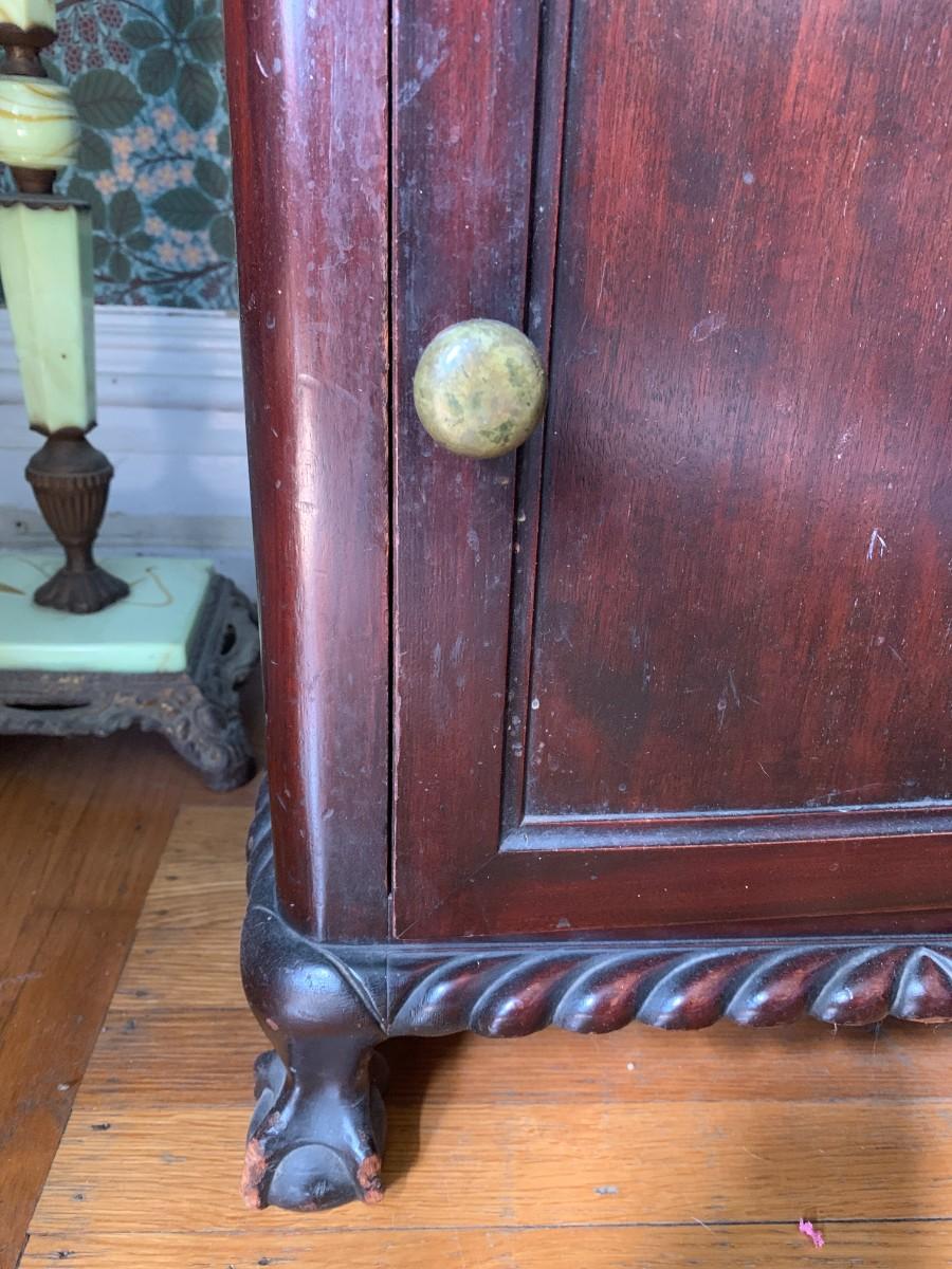 Cherry Tone with Drawer and Closed Cabinet, Brass Pulls, Claw and Ball Feet