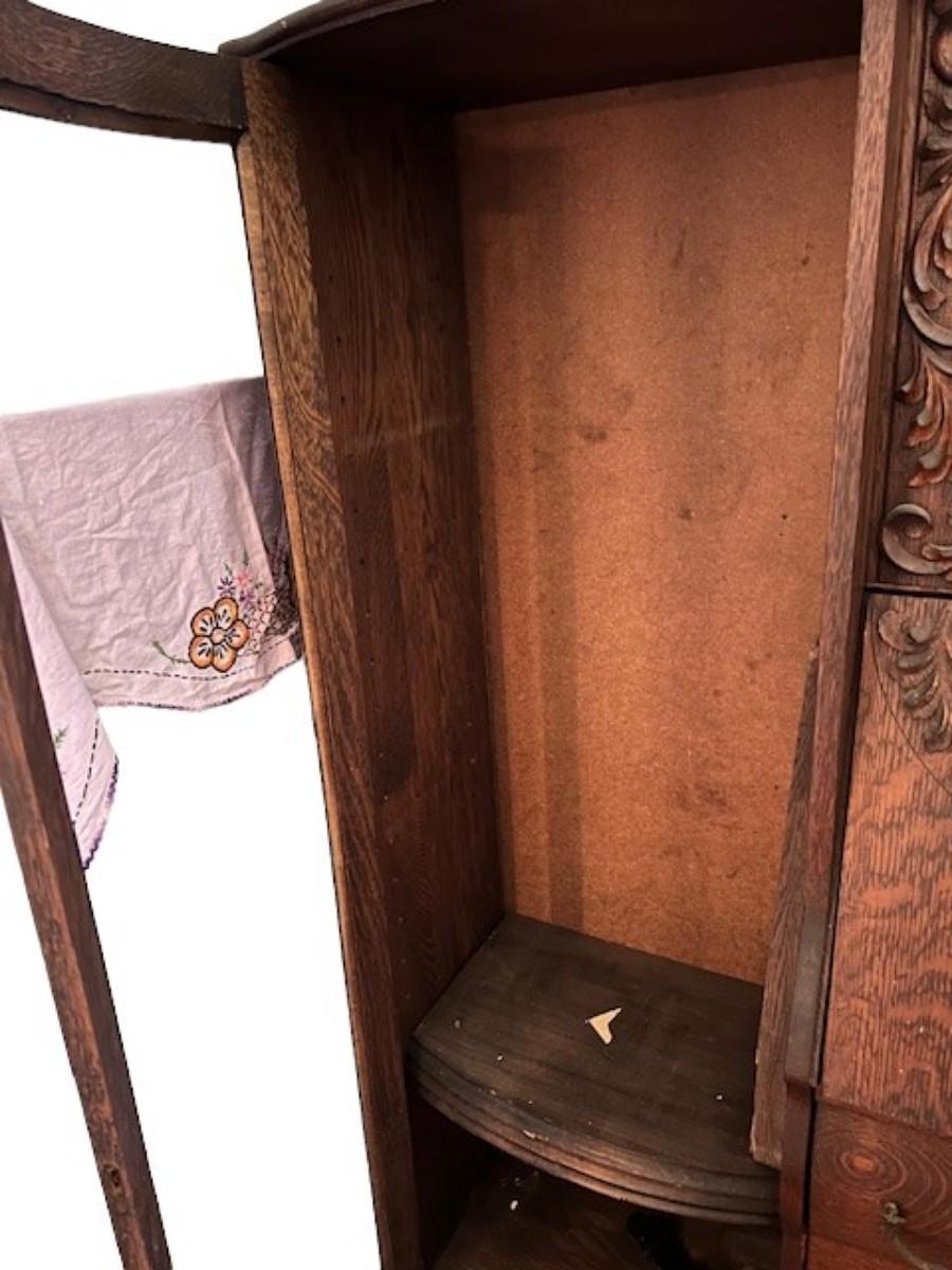 One door is missing, and the glass needs to be reinstalled. Age related wear. Does not include printer’s cabinet. Measurement: 74"H x 40"W x 15"D.