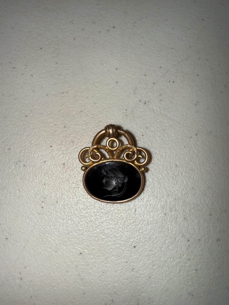 Victorian Onyx Carved Greek Male Cameo Pendant