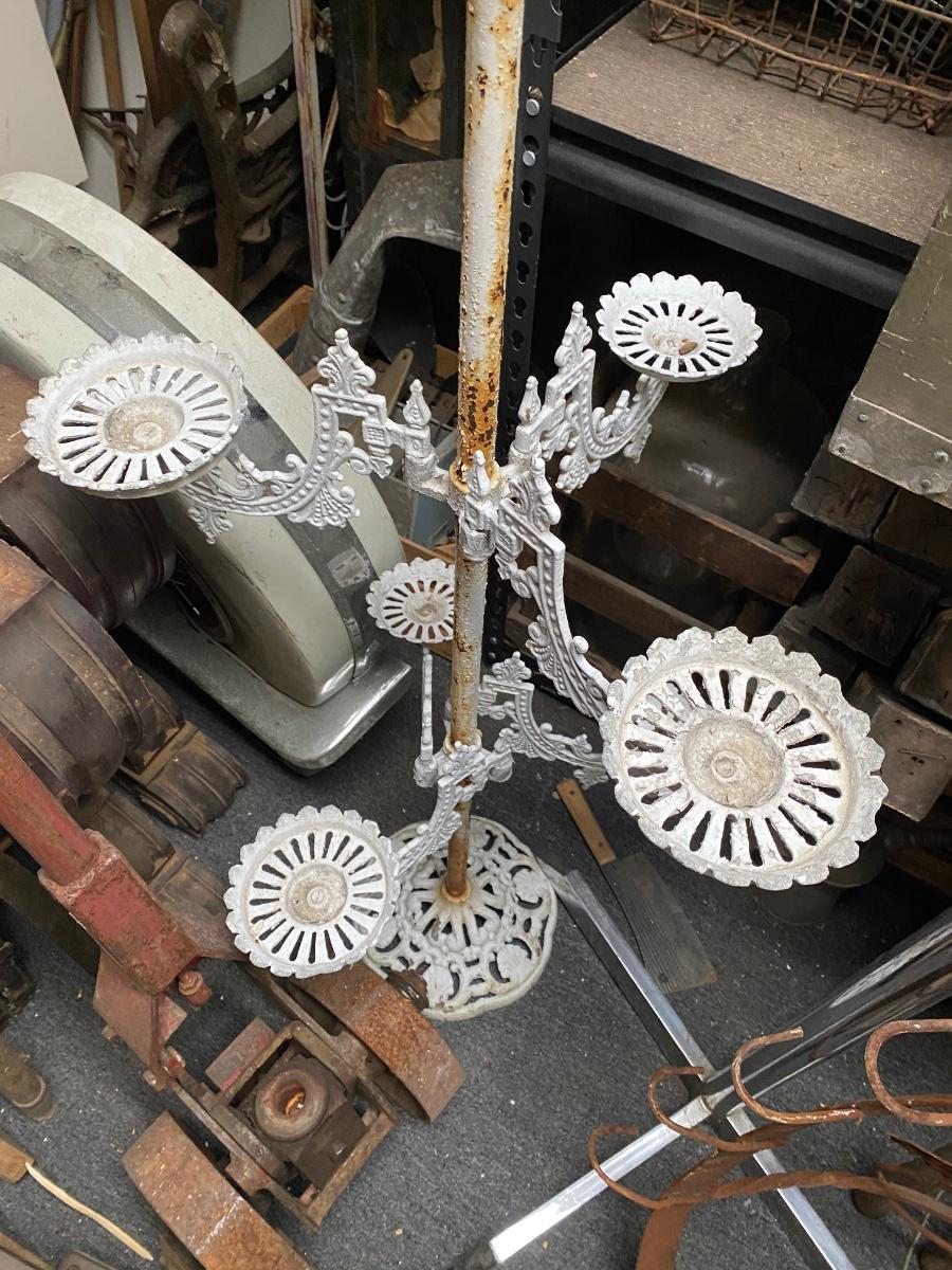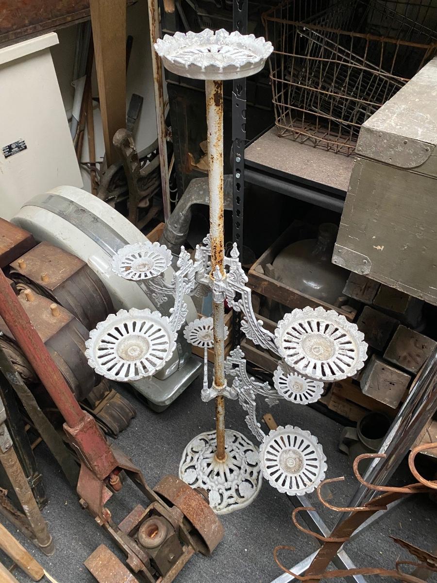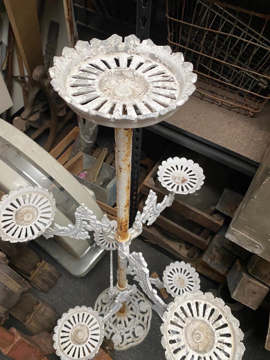 Wow! this is a really unique piece. Distressed look, 45" high wrought iron plants stand. Arms can move in any direction . At it's widest 22". Great piece for any plant lover.
