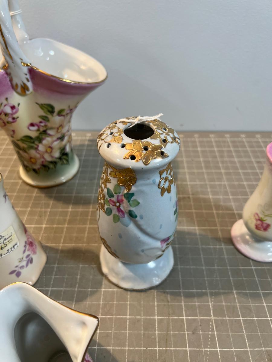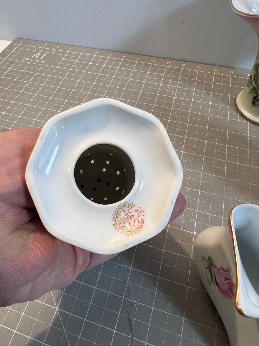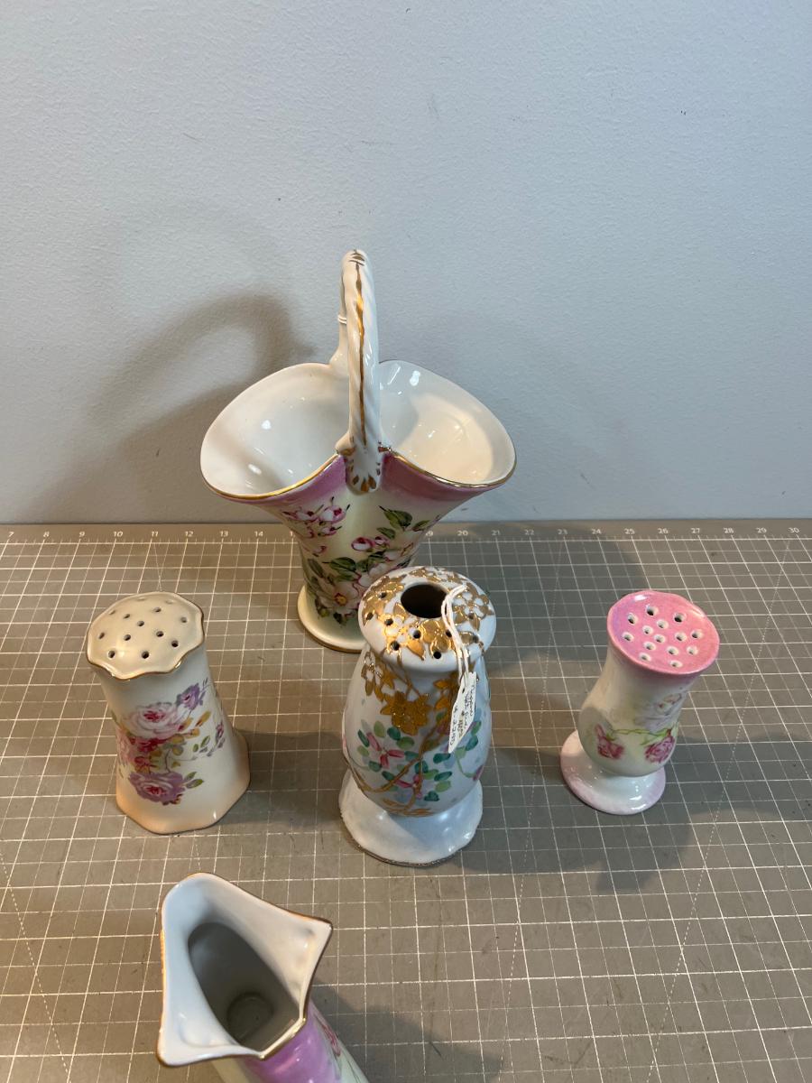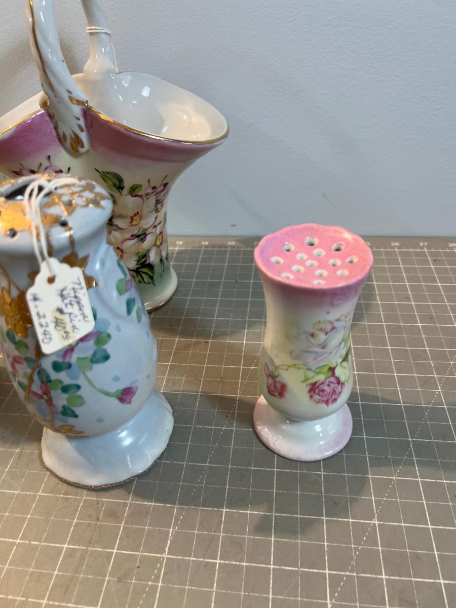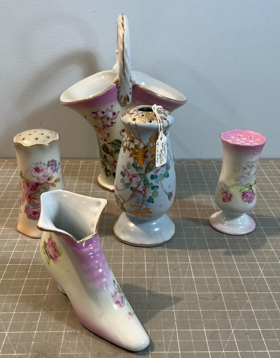 Victorian Porcelain Brides Basket, Hat Pin Holder & Shoe - Antique!
