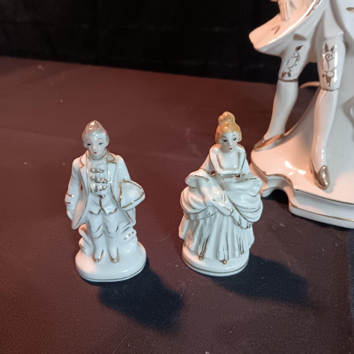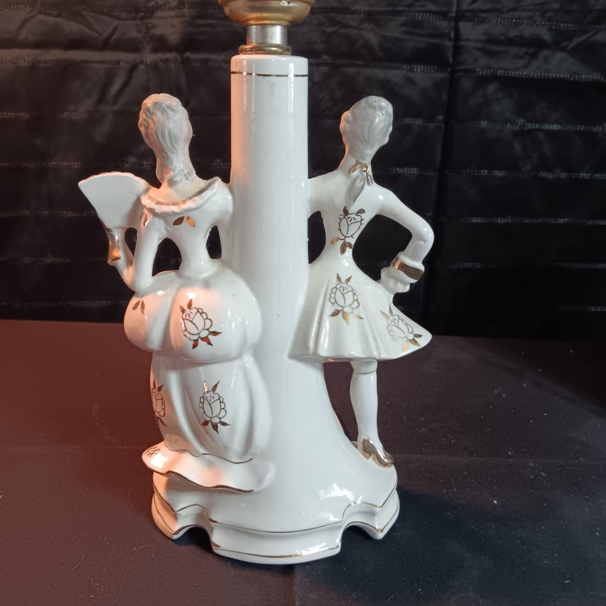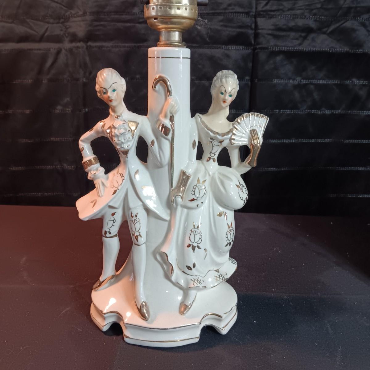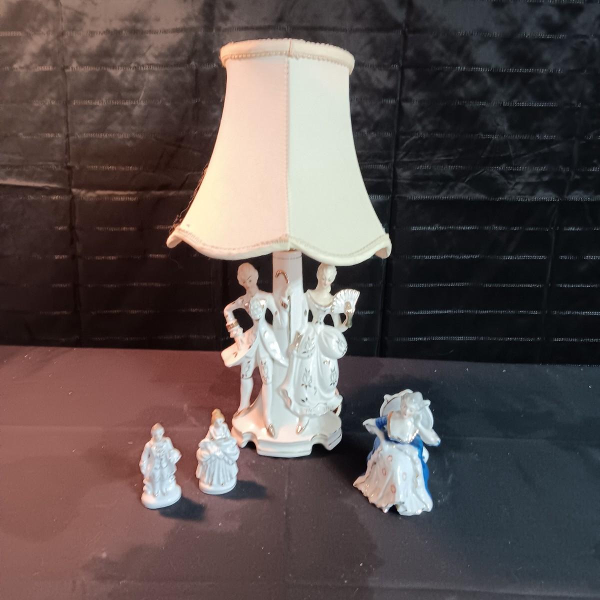VICTORIAN PORCELAIN LAMP AND 3 OCCUPIED JAPAN FIGURINES