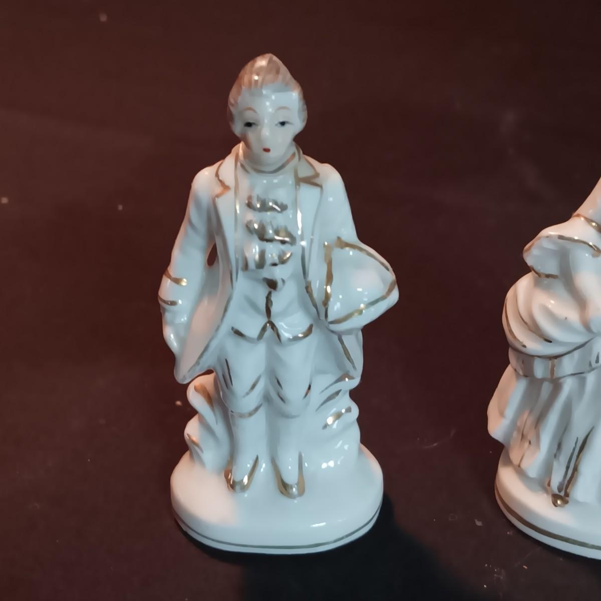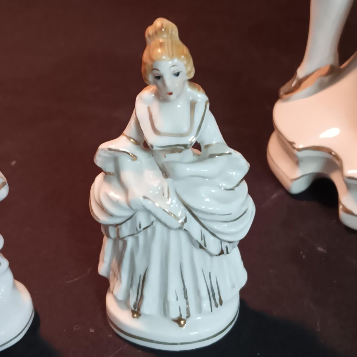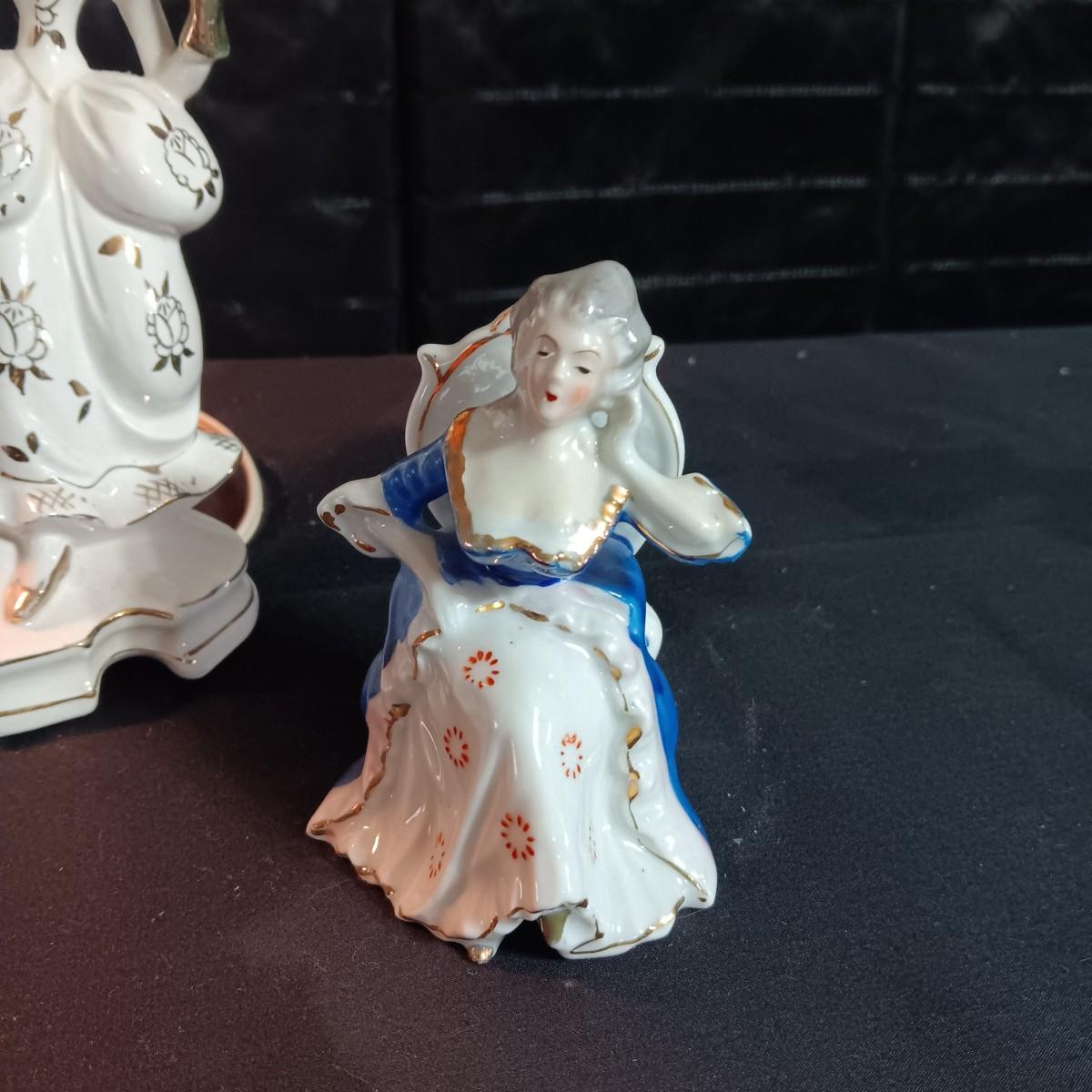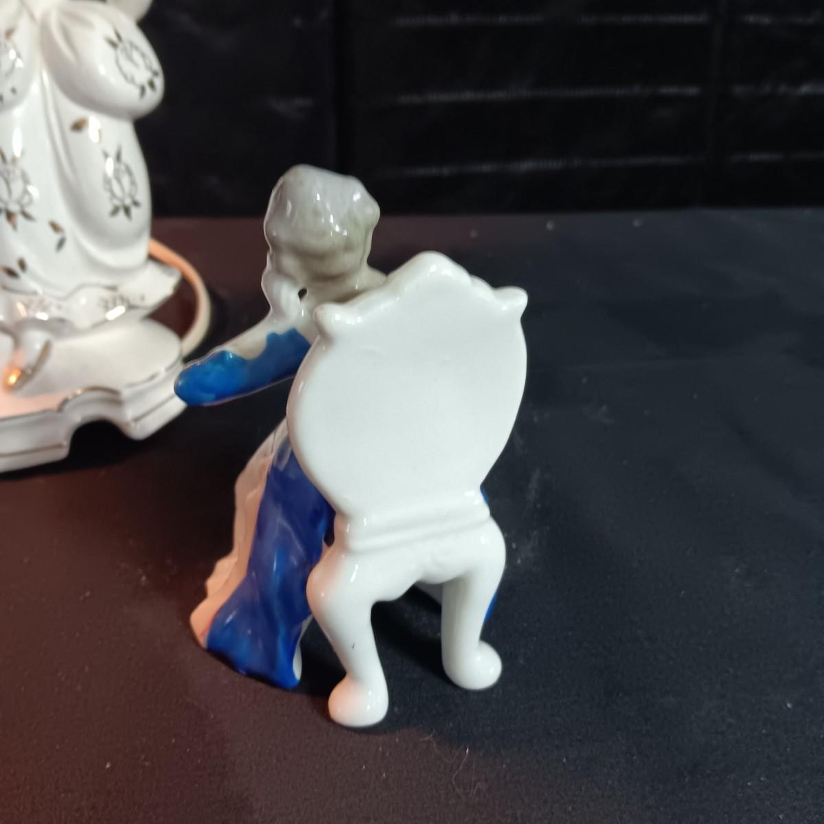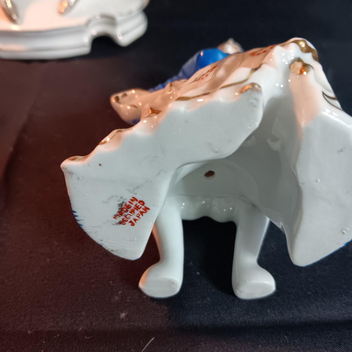 VICTORIAN PORCELAIN LAMP AND 3 OCCUPIED JAPAN FIGURINES