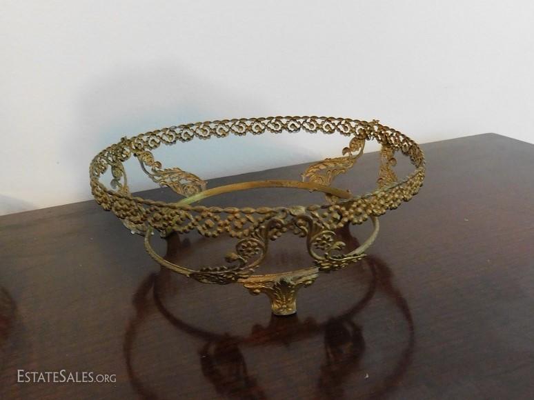 Victorian Pressed and Etched Glass Dish with Gilded Stand