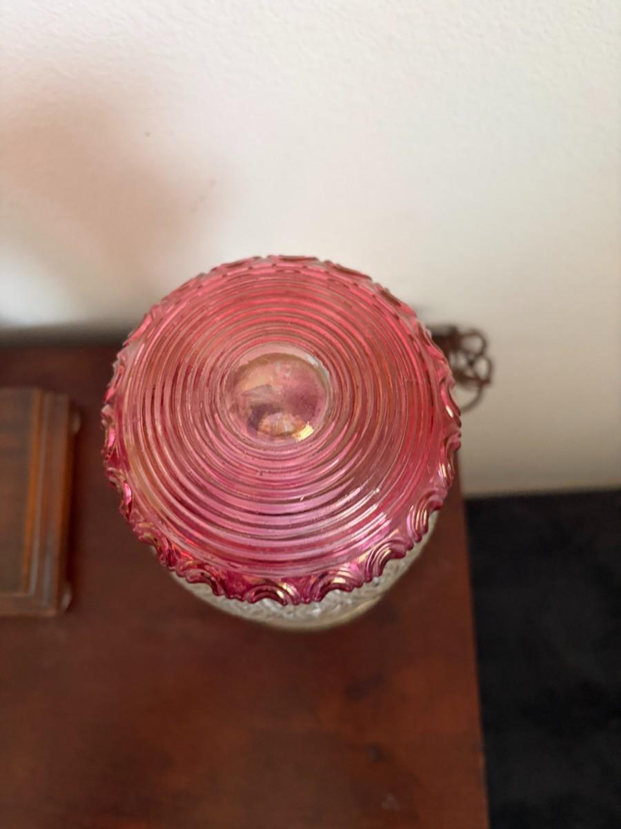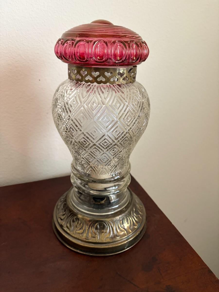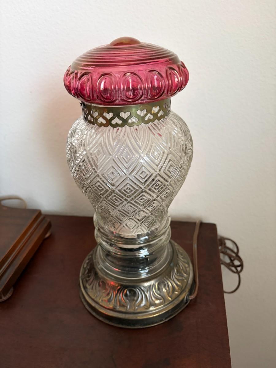 Victorian pressed clear glass, cranberry accents lamp