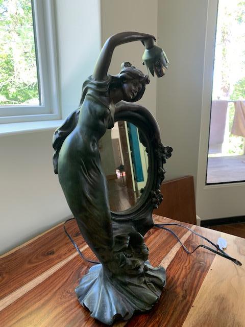 Victorian Reproduction Resin Nymph Lamp with Mirror 20" there is no shade but really nice item